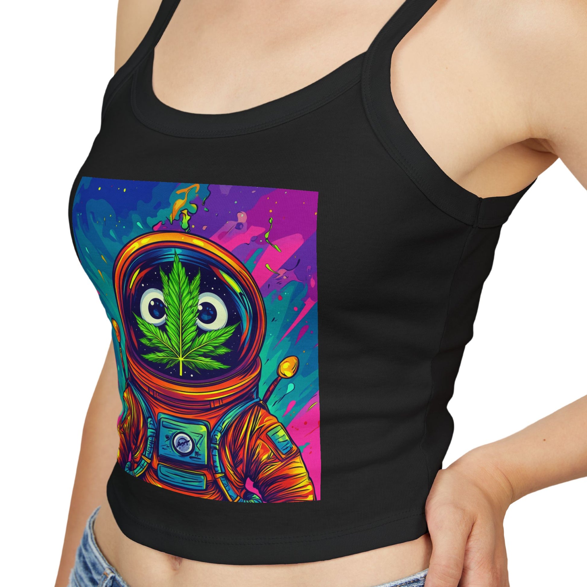 Suit up for a cosmic cruise in this out-of-this-world crewneck featuring a wide-eyed space traveler with a leafy secret. Drenched in vibrant neon and intergalactic drips, this sweatshirt is for the dreamers, explorers, and stoners who know that sometimes the best trips happen in zero gravity.