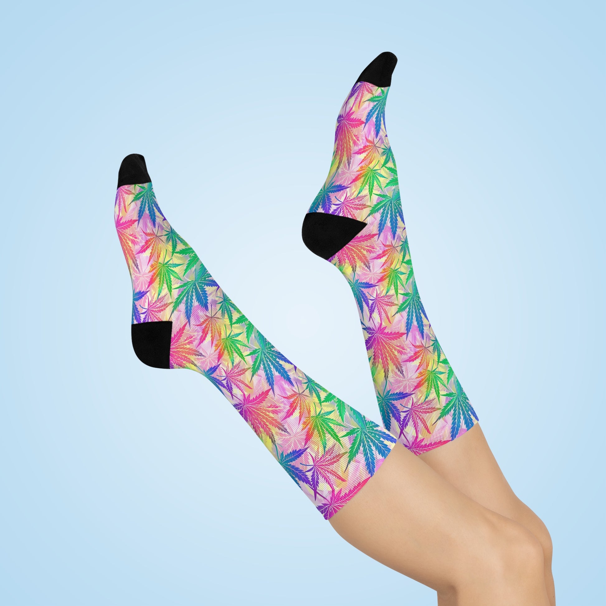 Step into a swirl of color and chill vibes with our KaleidoKush Socks—a psychedelic twist on your favorite herb. This all-over print fuses pastel rainbow cannabis leaves into a kaleidoscope-inspired pattern that’s as mind-bending as your favorite strain. Bright, bold, and endlessly trippy, these socks bring festival flair to your everyday high.