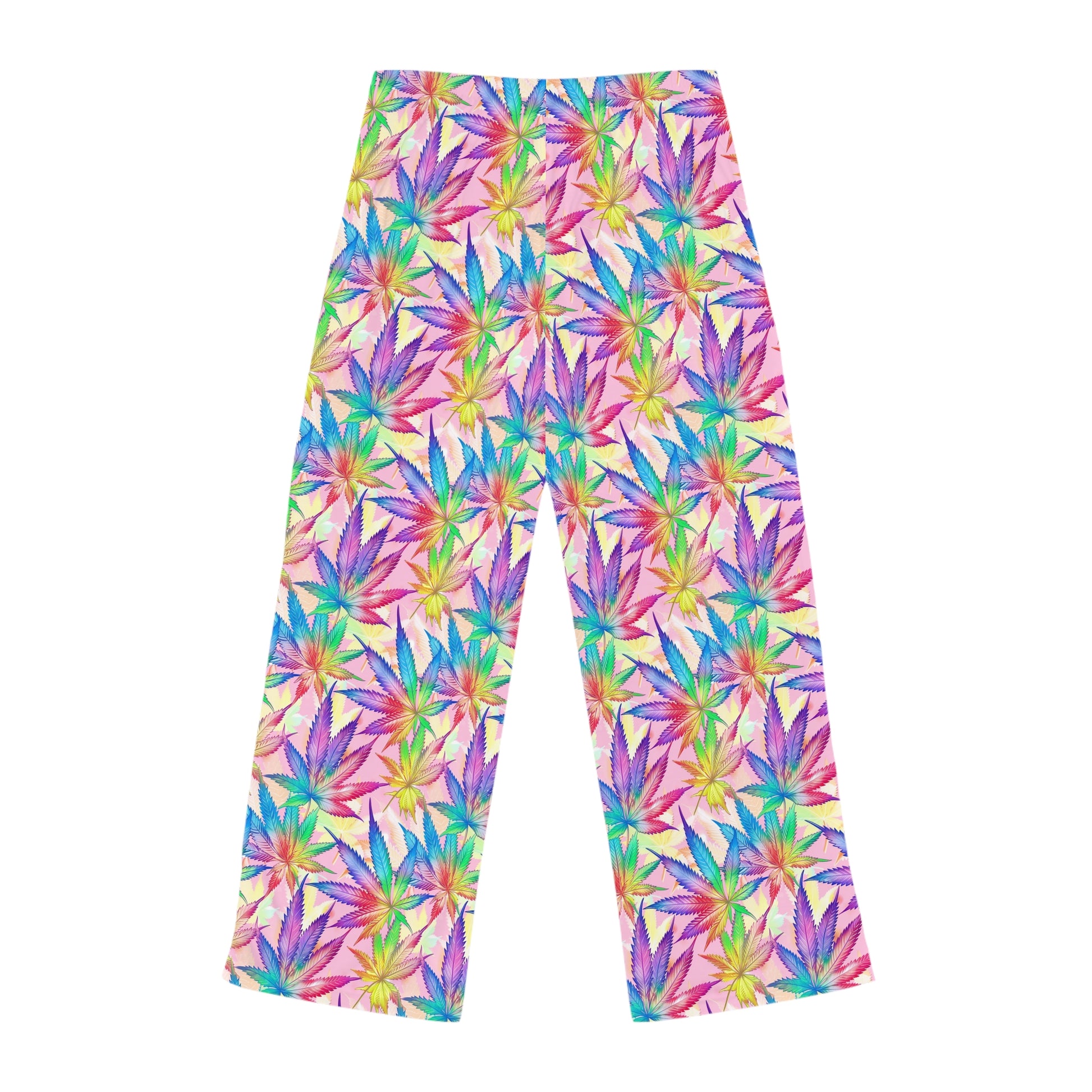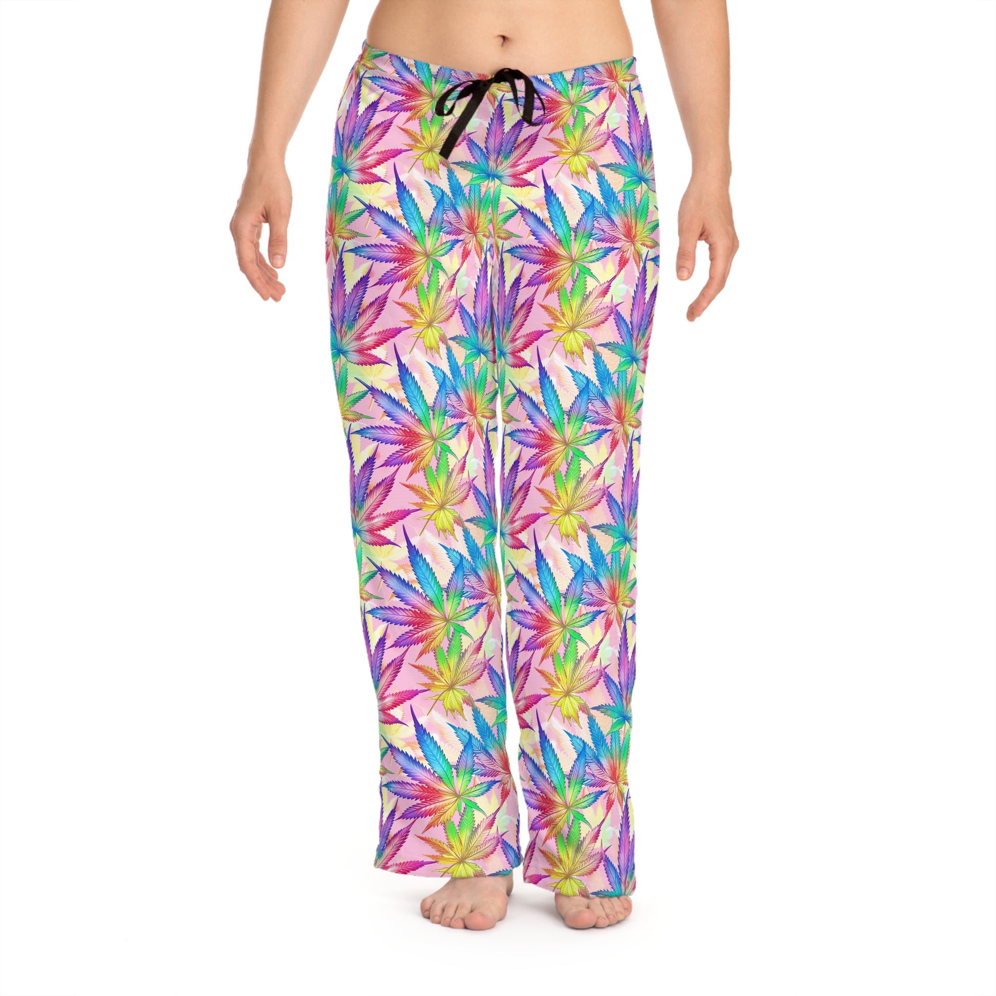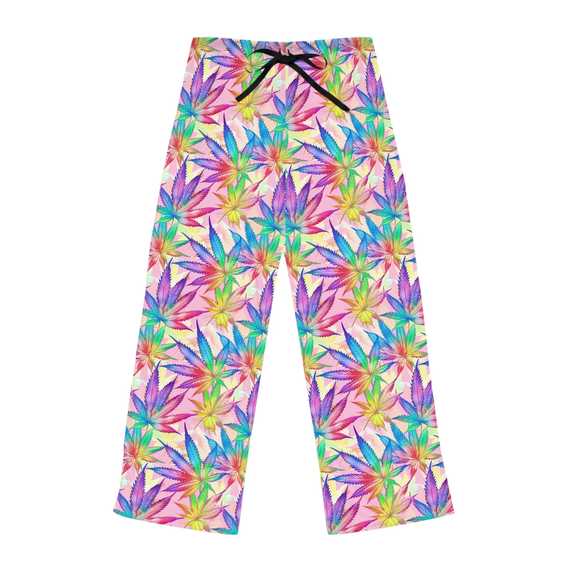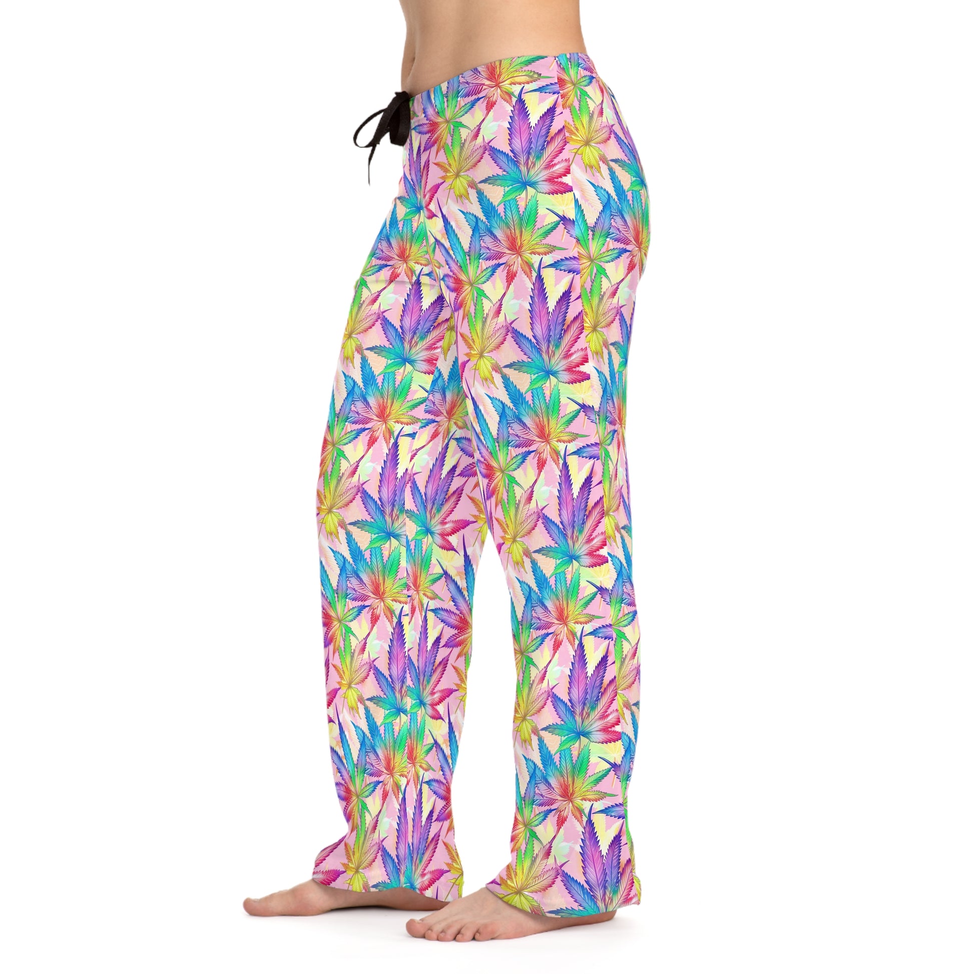 Slide into a technicolor dream with our KaleidoKush Pajama Pants — where comfort meets cannabis in full-spectrum style. These ultra-cozy bottoms are wrapped in a rainbow of leaf prints against a cotton-candy pink backdrop, perfect for turning your chill zone into a vibrant vibe sesh. Whether you’re sparking up or winding down, these pants are your new go-to for cloud-level comfort.