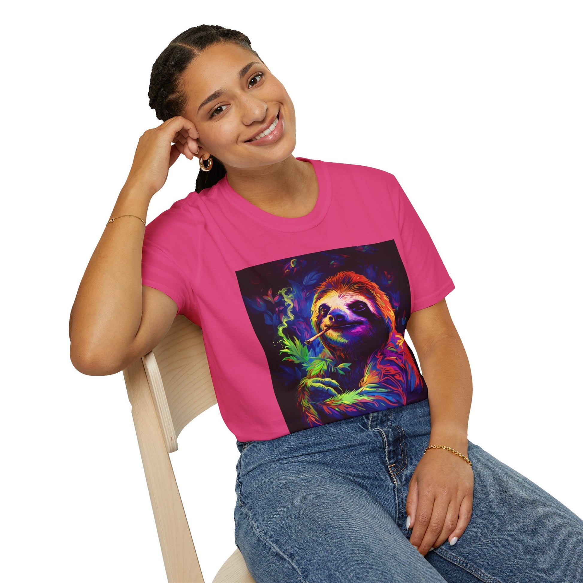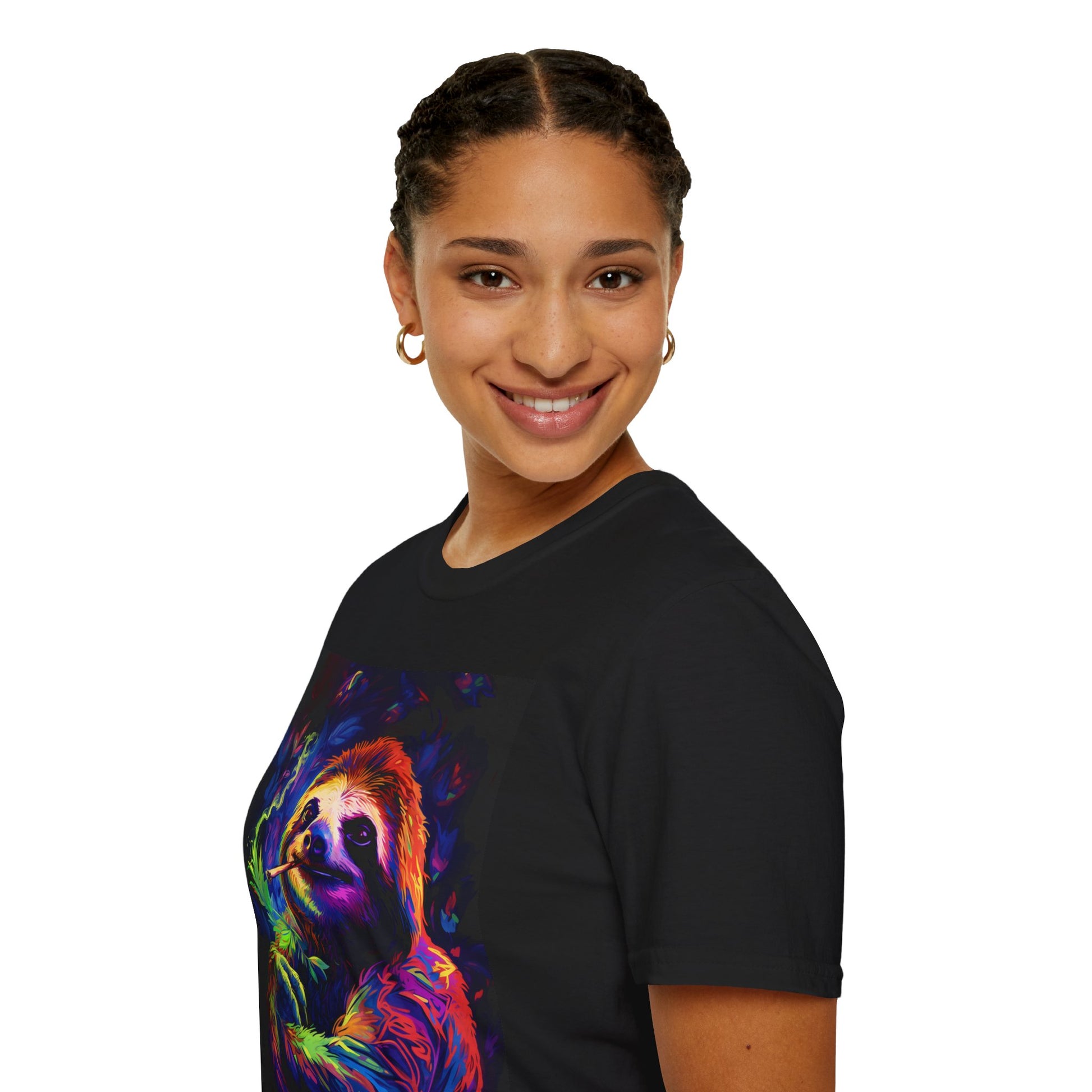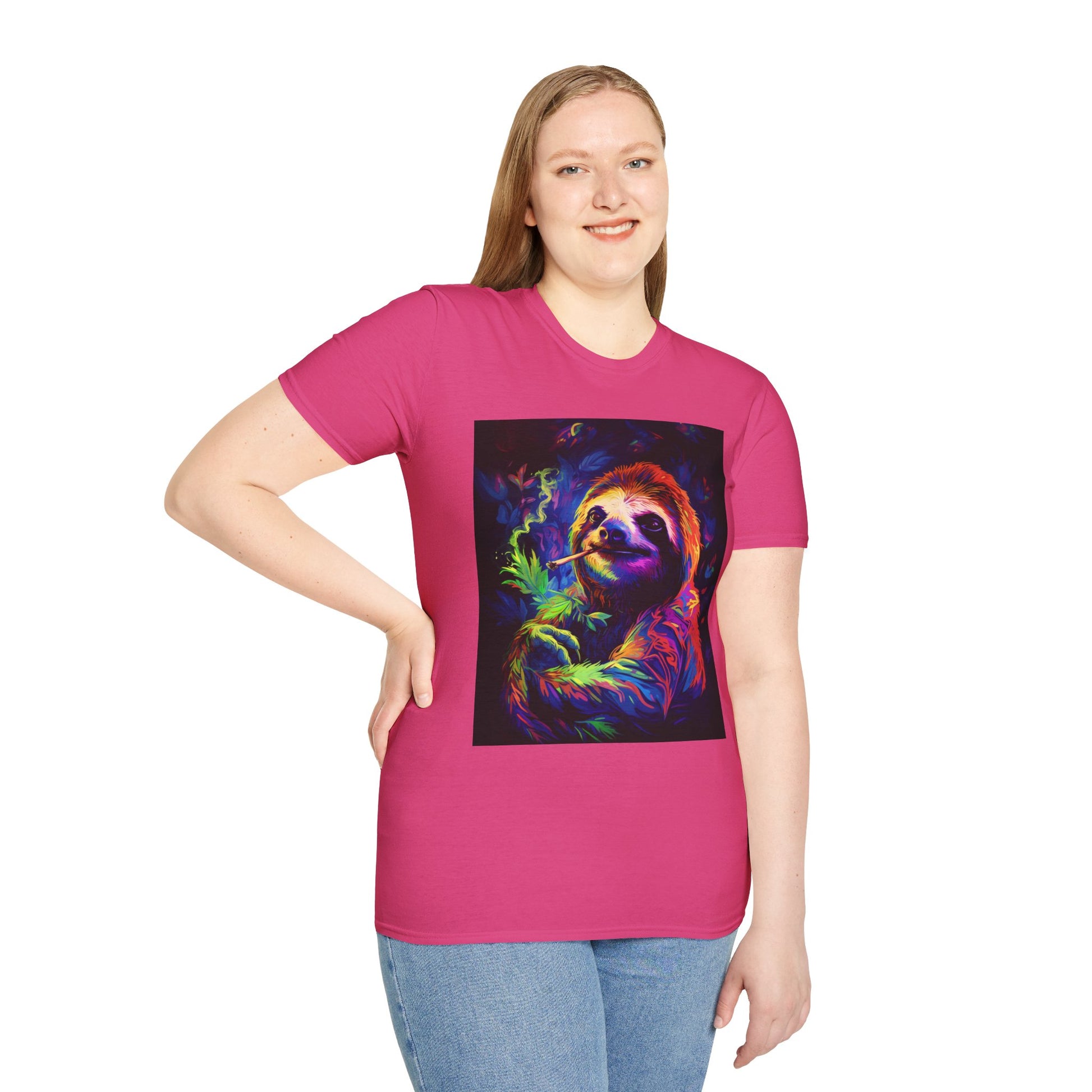Deep in the heart of a neon jungle, where time moves slow and the air is thick with good energy, lives the king of calm — our psychedelic sloth, sparking up and soaking in the moment. This tee captures that perfect fusion of chill and wild, where lush leaves meet luminous colors, and peace is just a puff away.