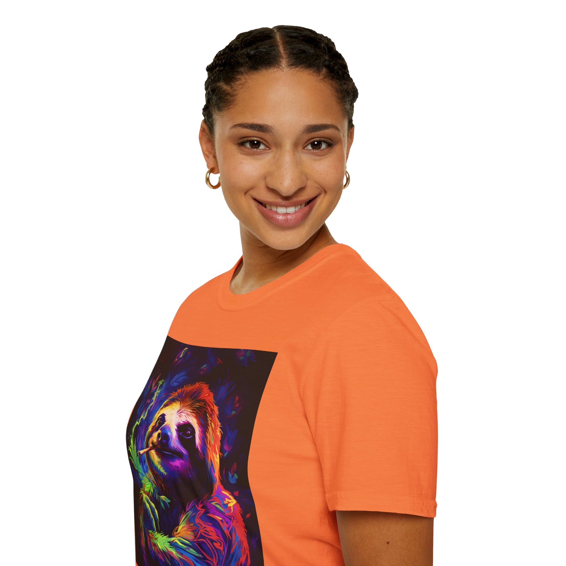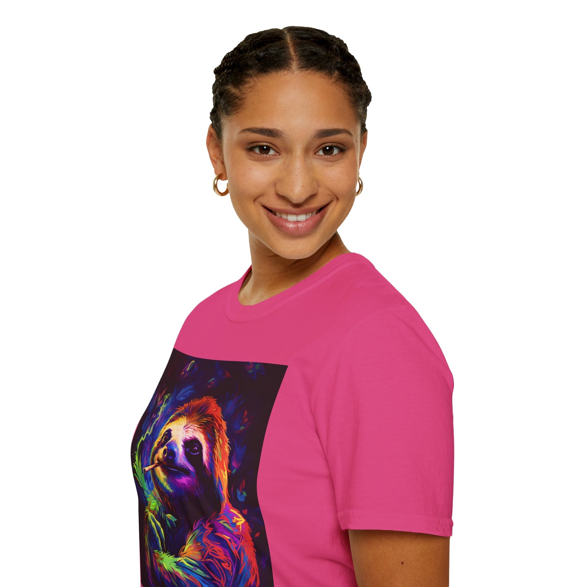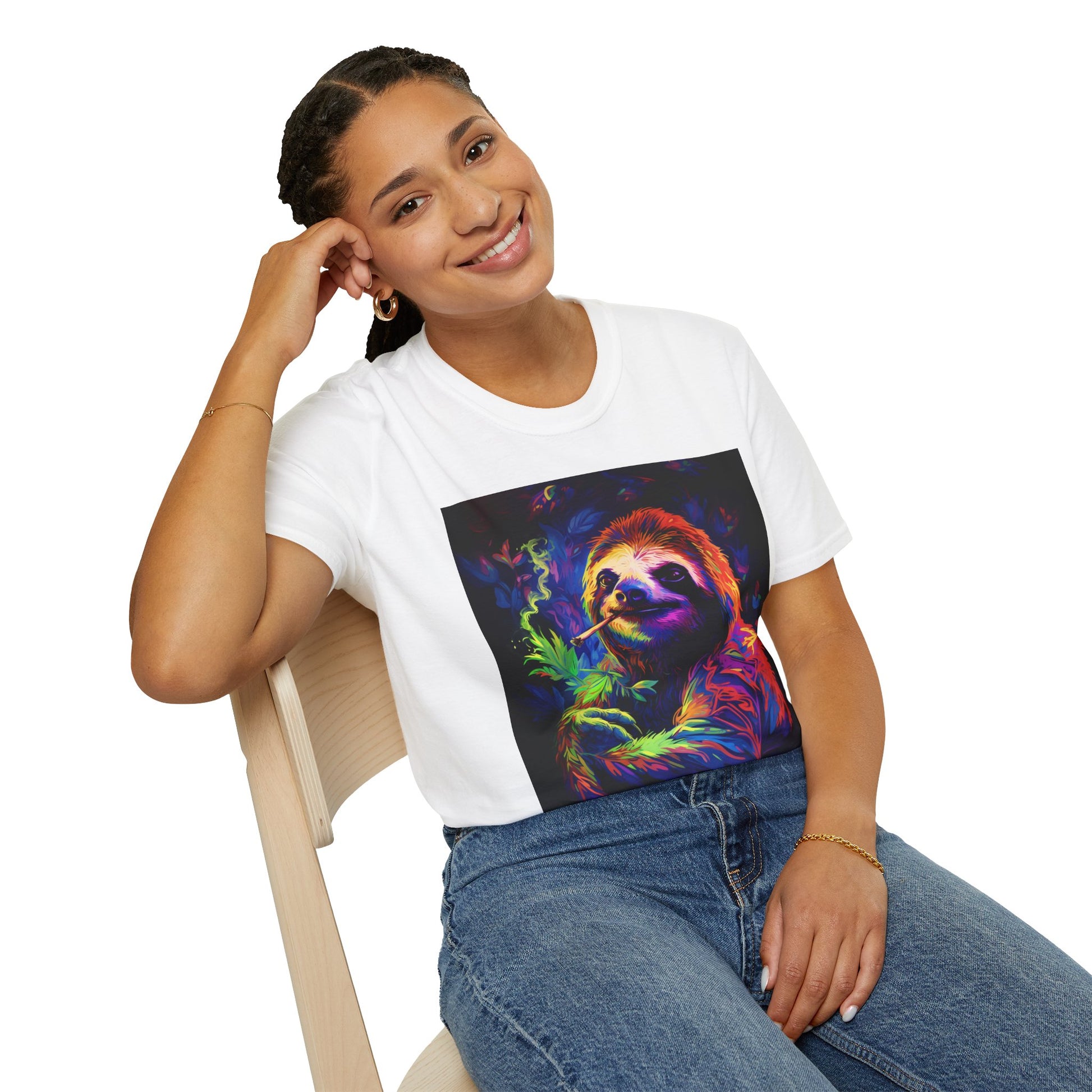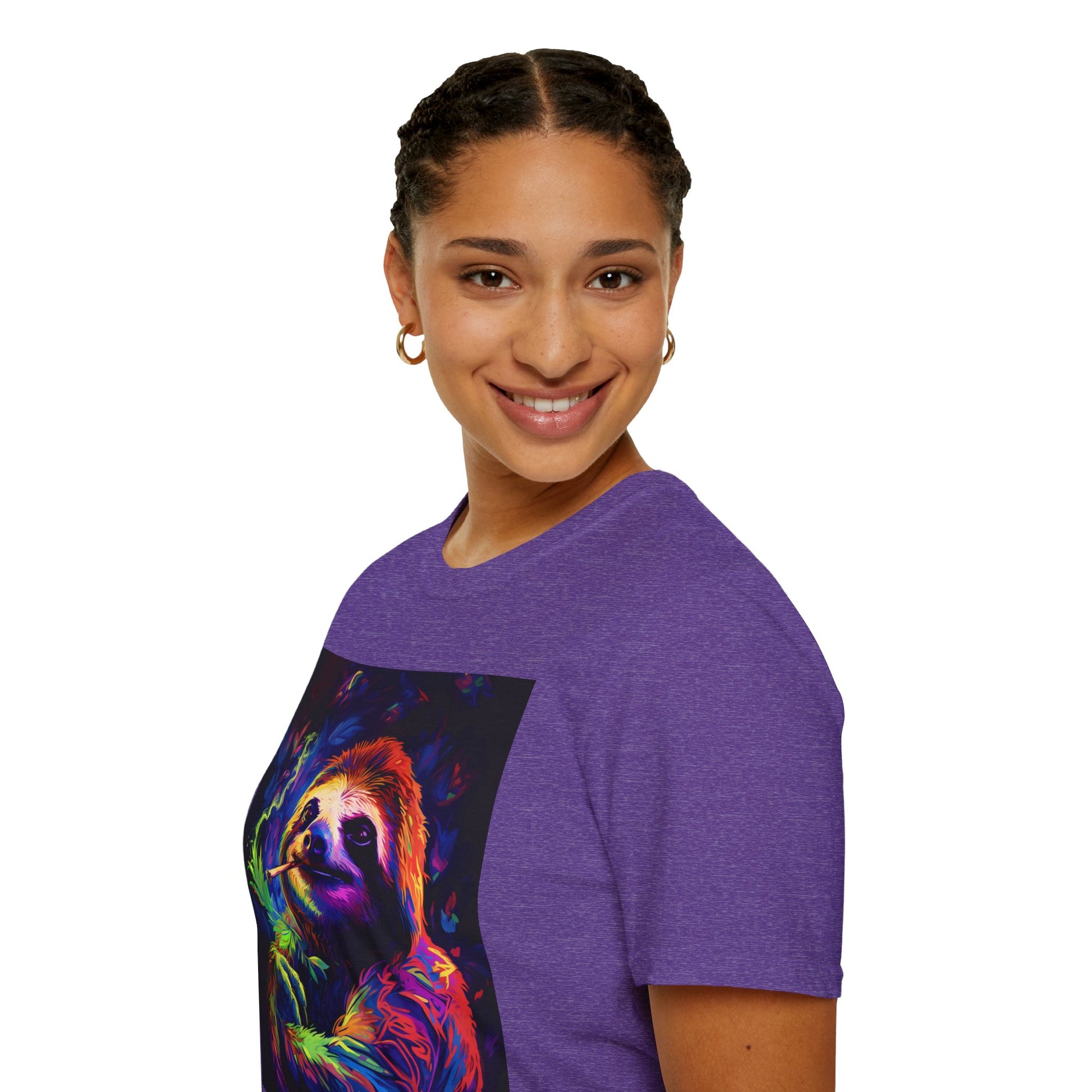 Deep in the heart of a neon jungle, where time moves slow and the air is thick with good energy, lives the king of calm — our psychedelic sloth, sparking up and soaking in the moment. This tee captures that perfect fusion of chill and wild, where lush leaves meet luminous colors, and peace is just a puff away.