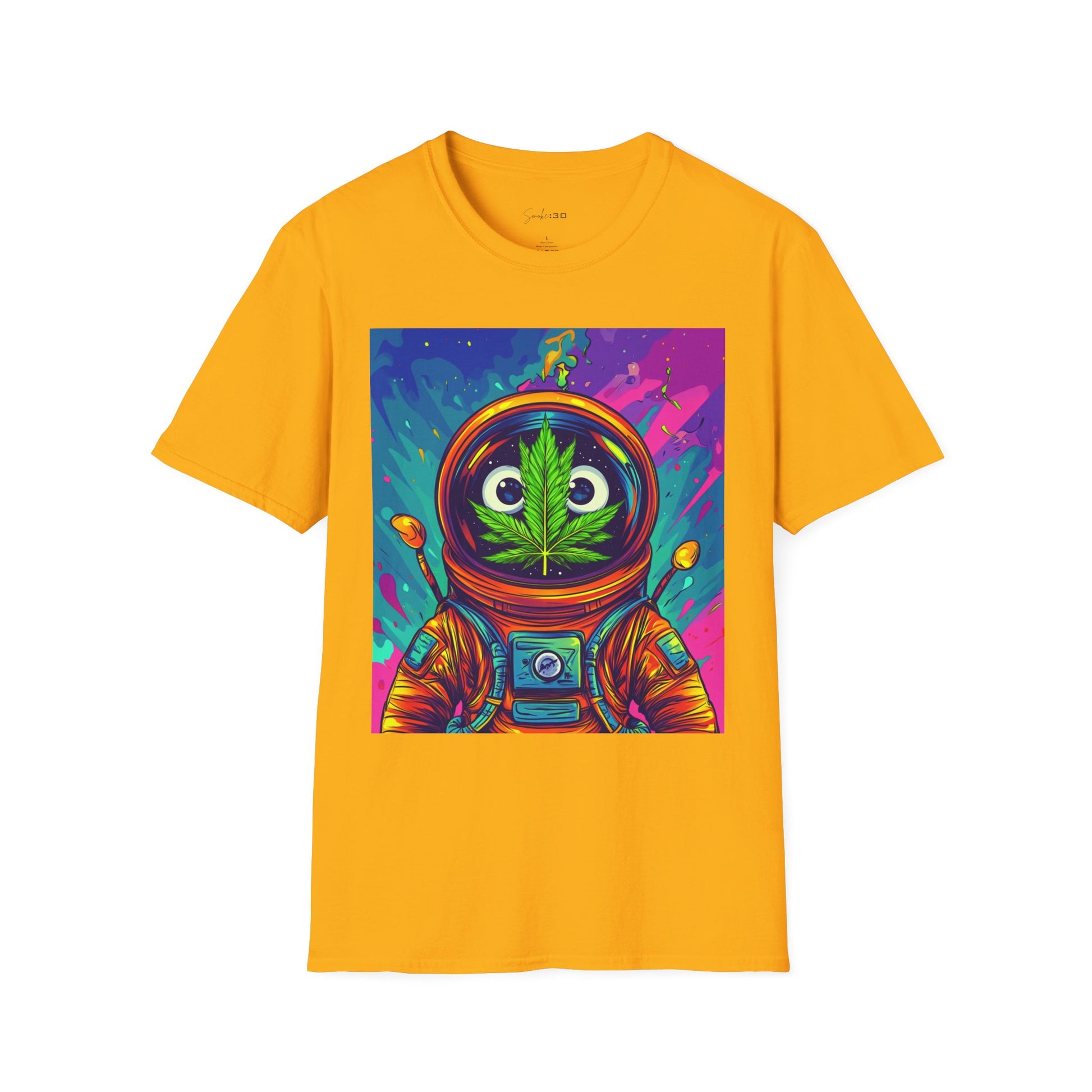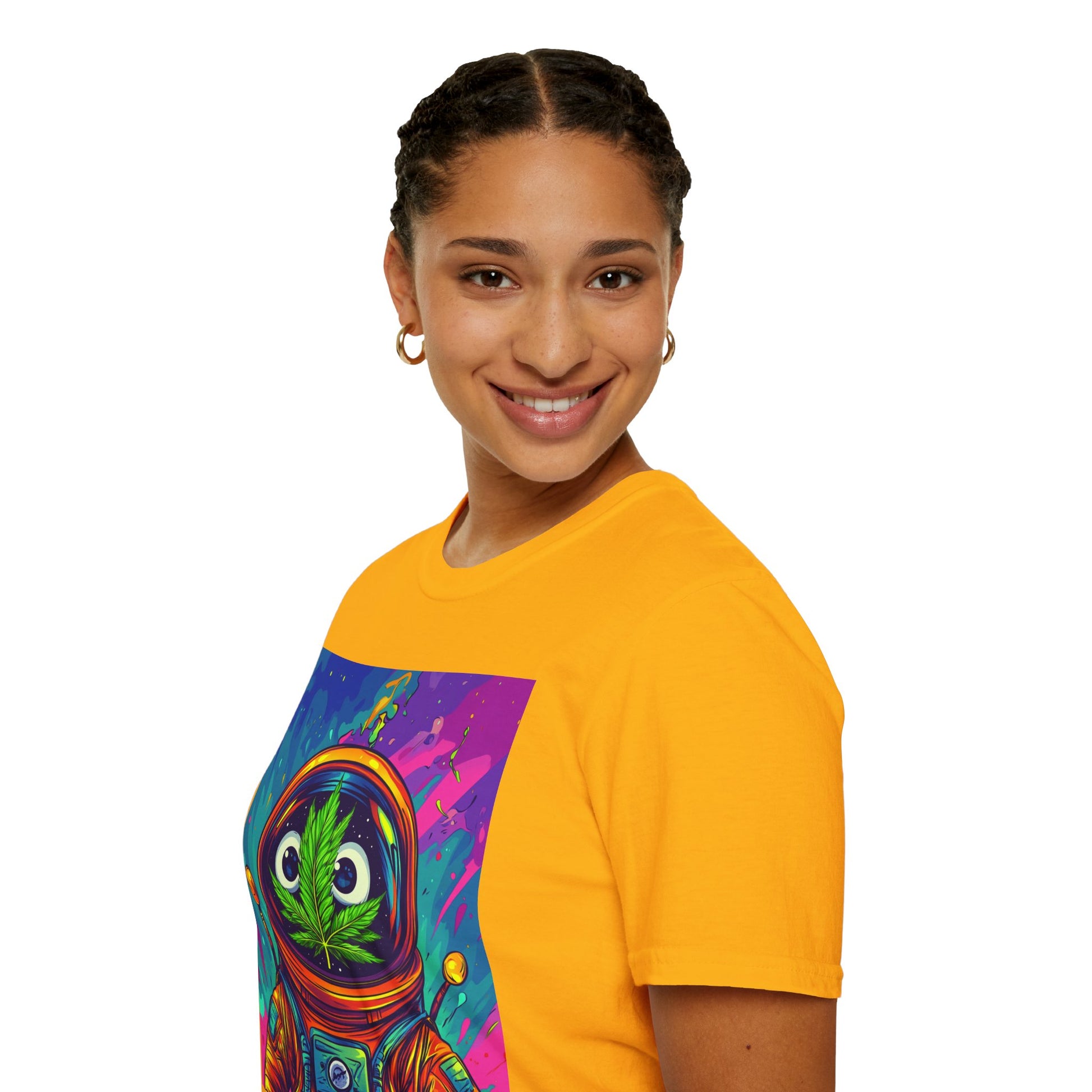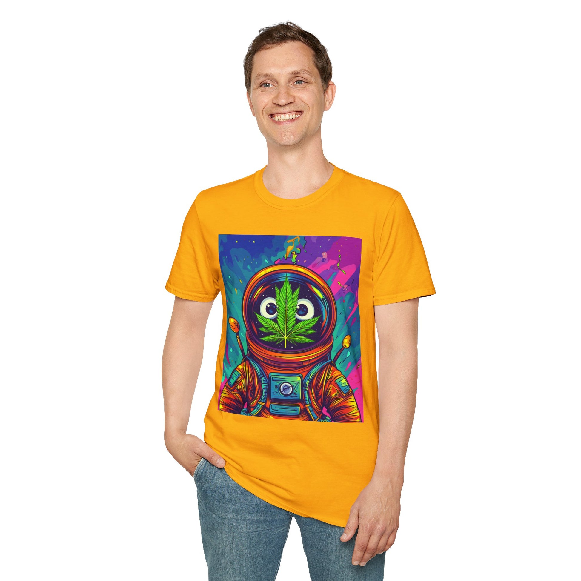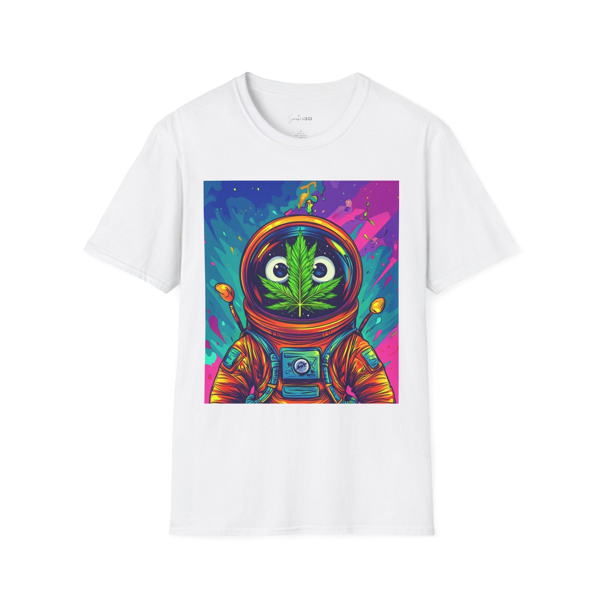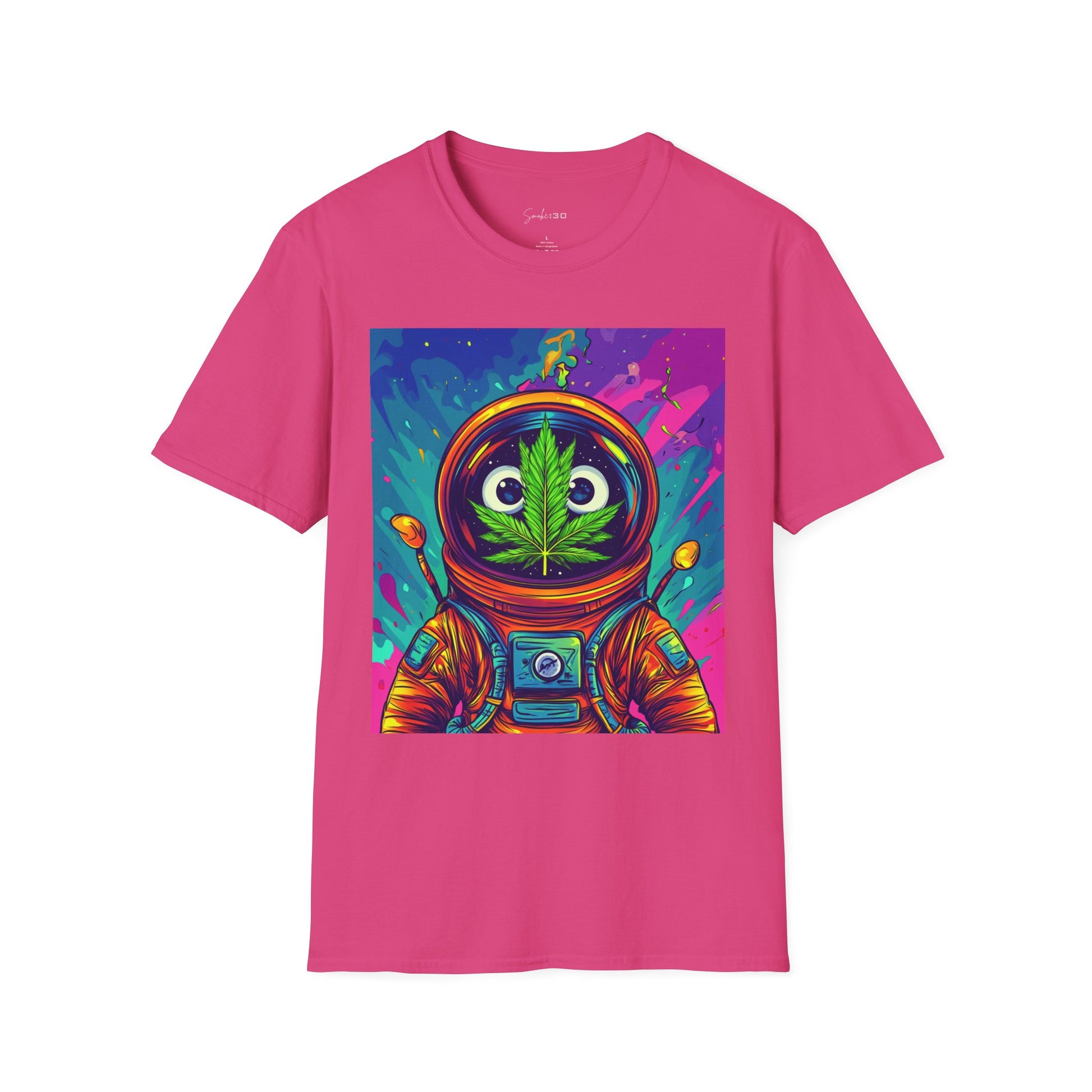 Suit up for a cosmic cruise in this out-of-this-world crewneck featuring a wide-eyed space traveler with a leafy secret. Drenched in vibrant neon and intergalactic drips, this sweatshirt is for the dreamers, explorers, and stoners who know that sometimes the best trips happen in zero gravity.