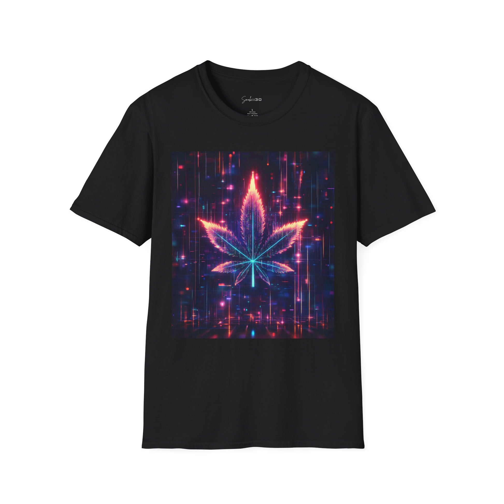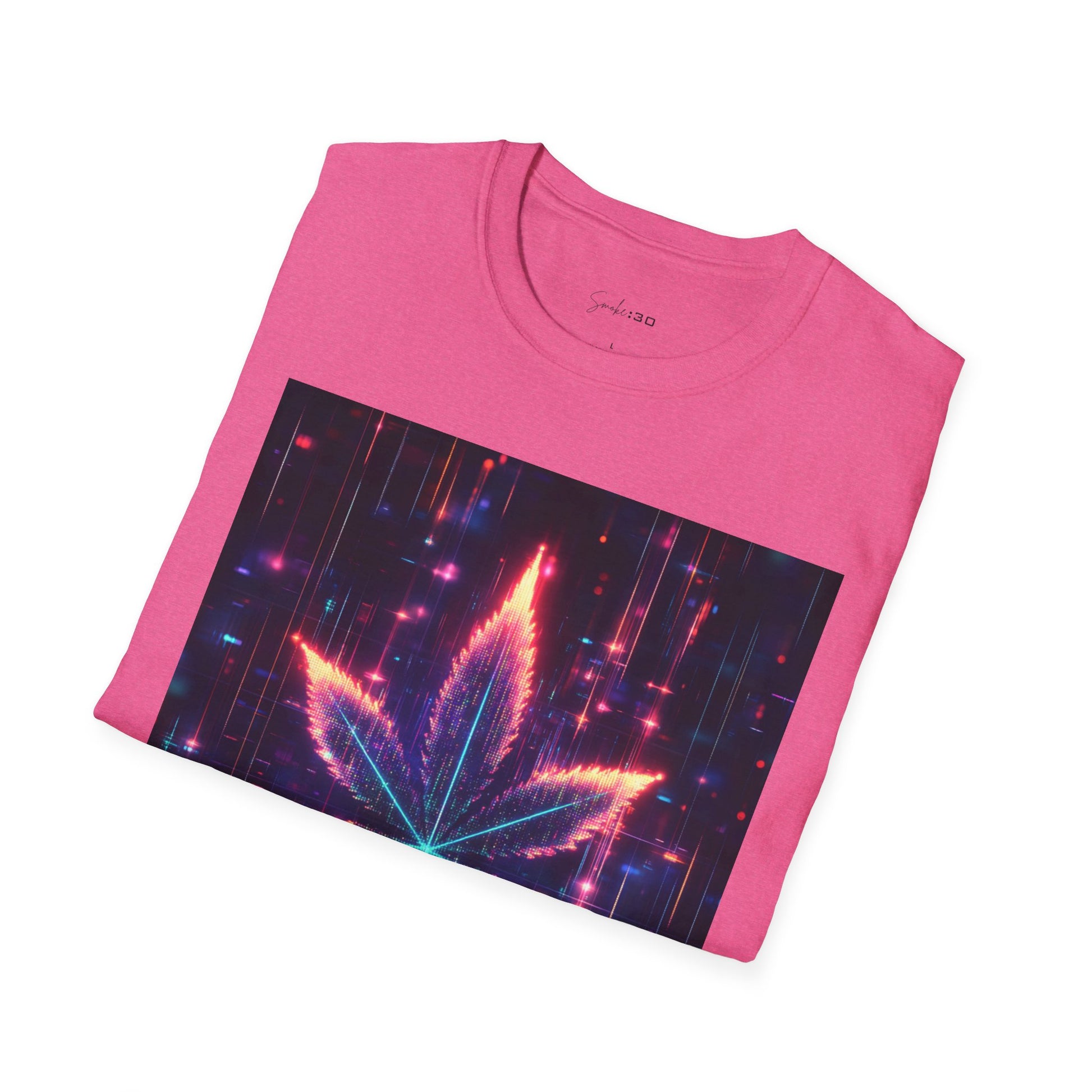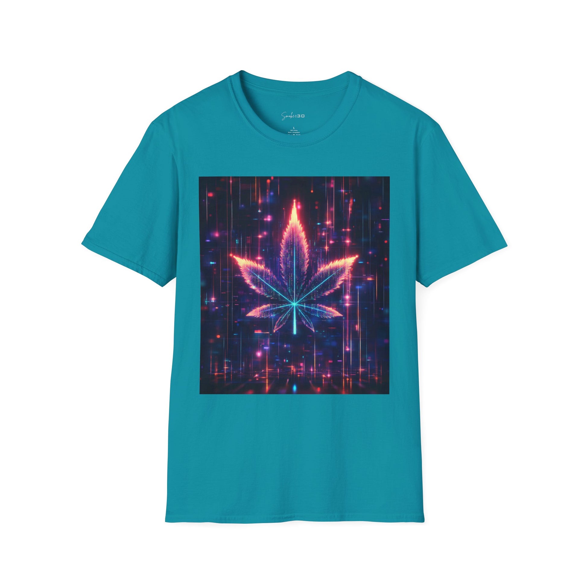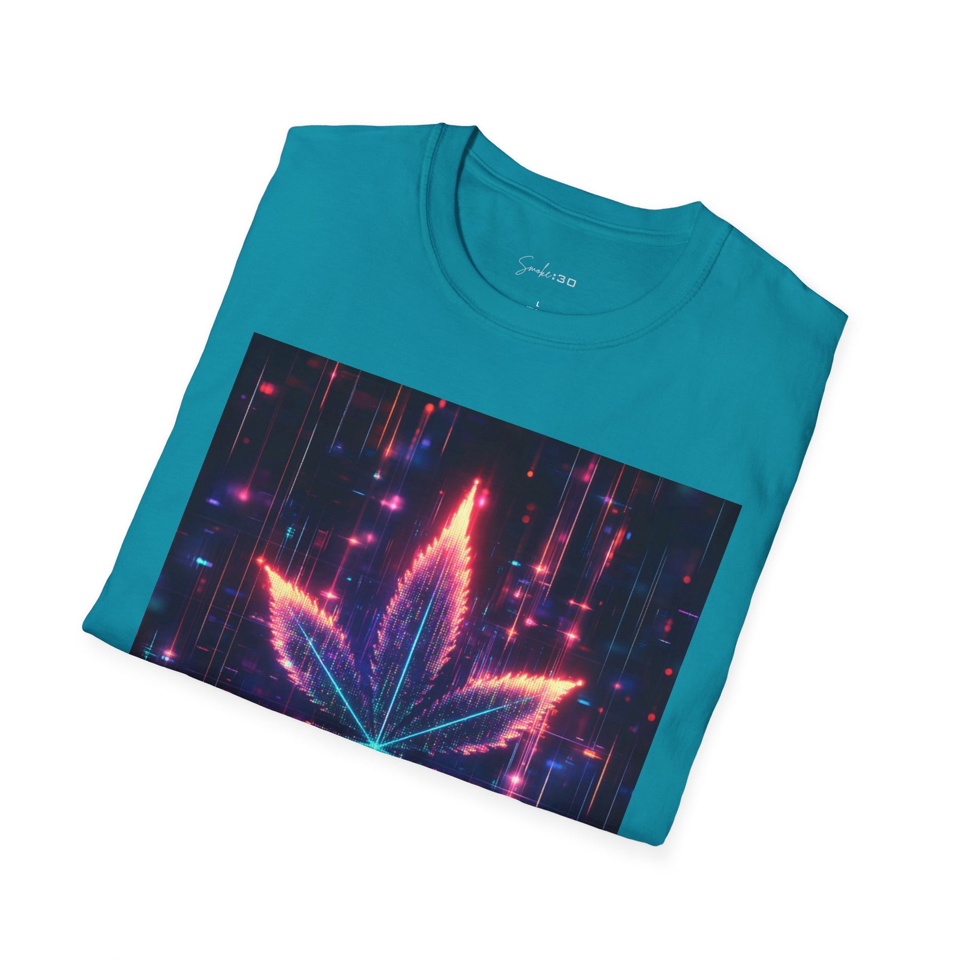 The glowing leaf centerpiece pulses with neon intensity, surrounded by electric sparks and cyber-inspired reflections that capture the timeless ritual of 420 reimagined through a futuristic lens.