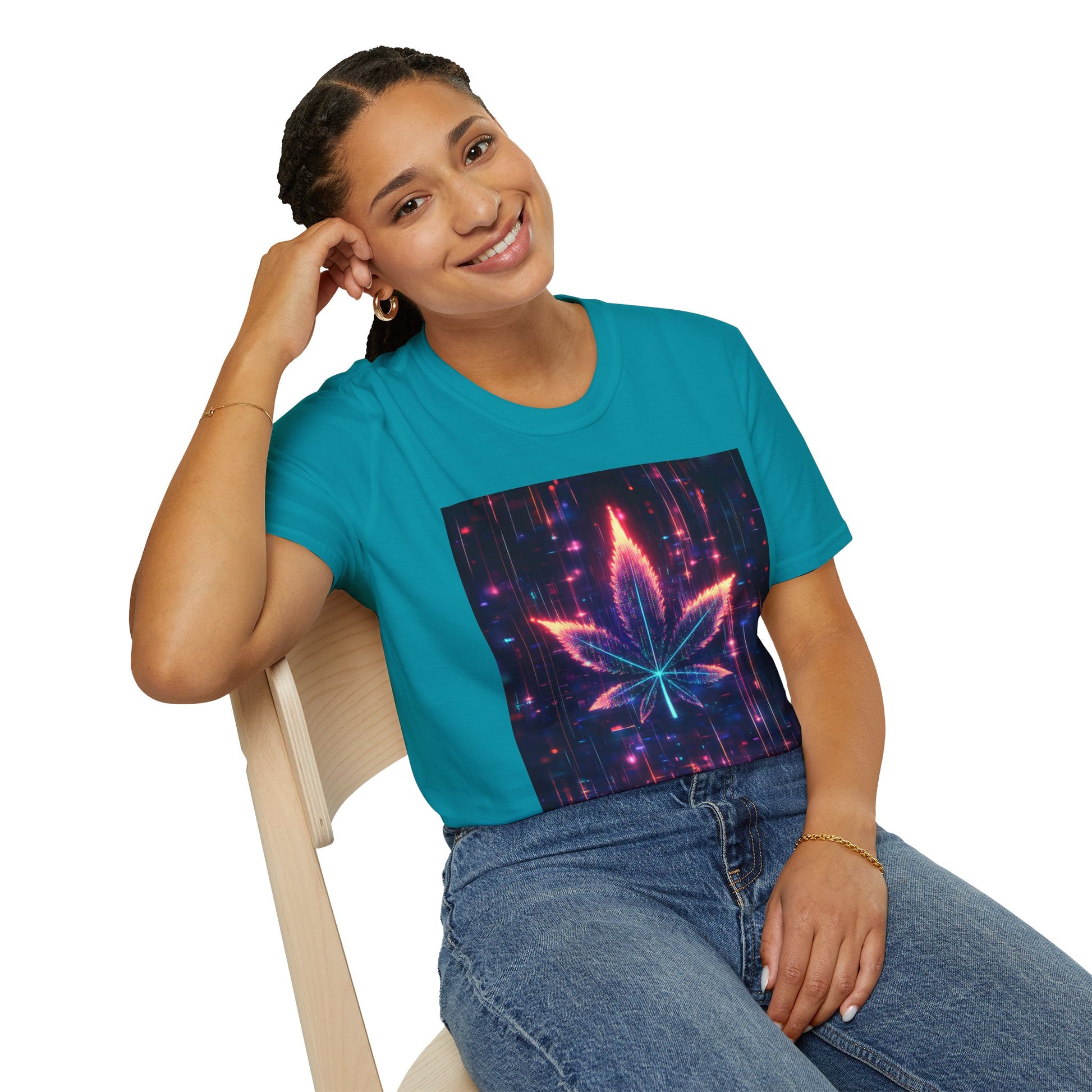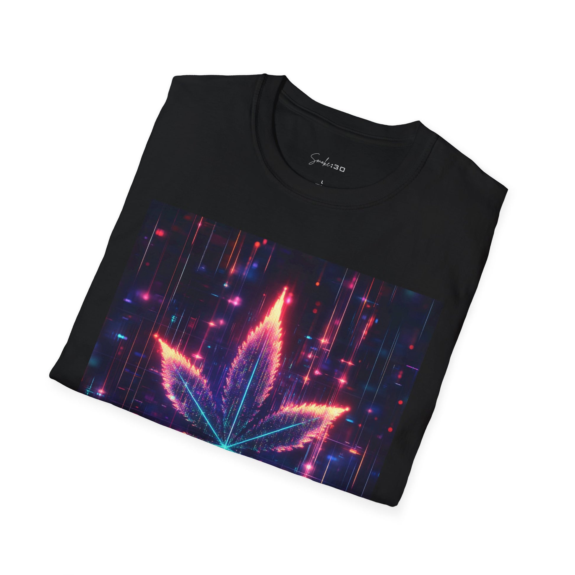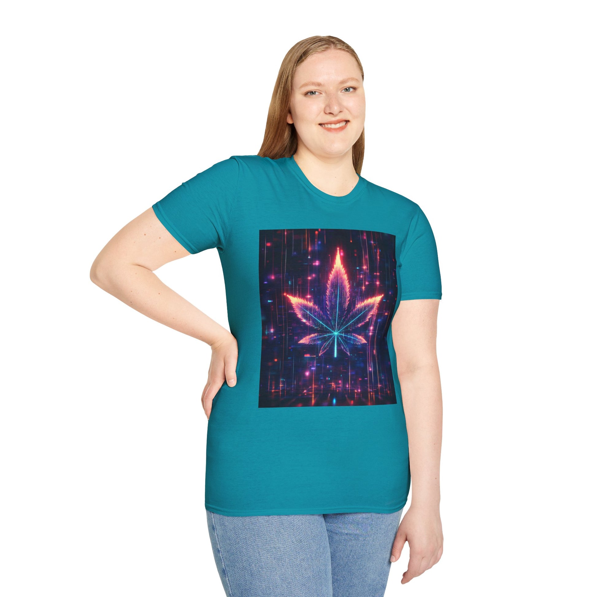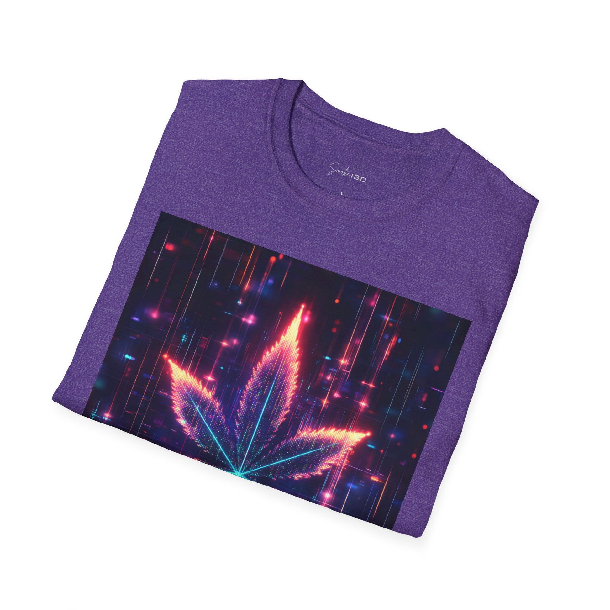 The glowing leaf centerpiece pulses with neon intensity, surrounded by electric sparks and cyber-inspired reflections that capture the timeless ritual of 420 reimagined through a futuristic lens.
