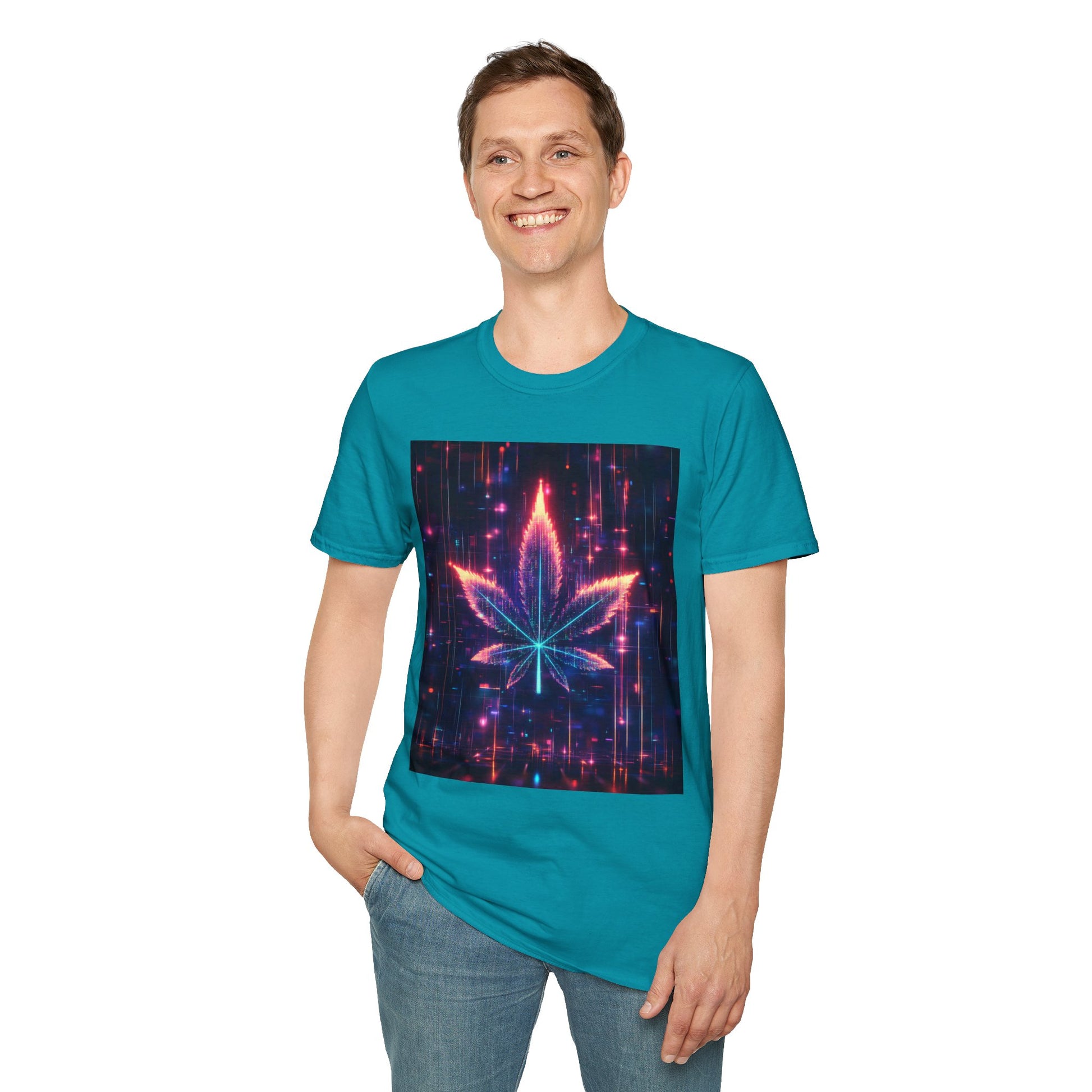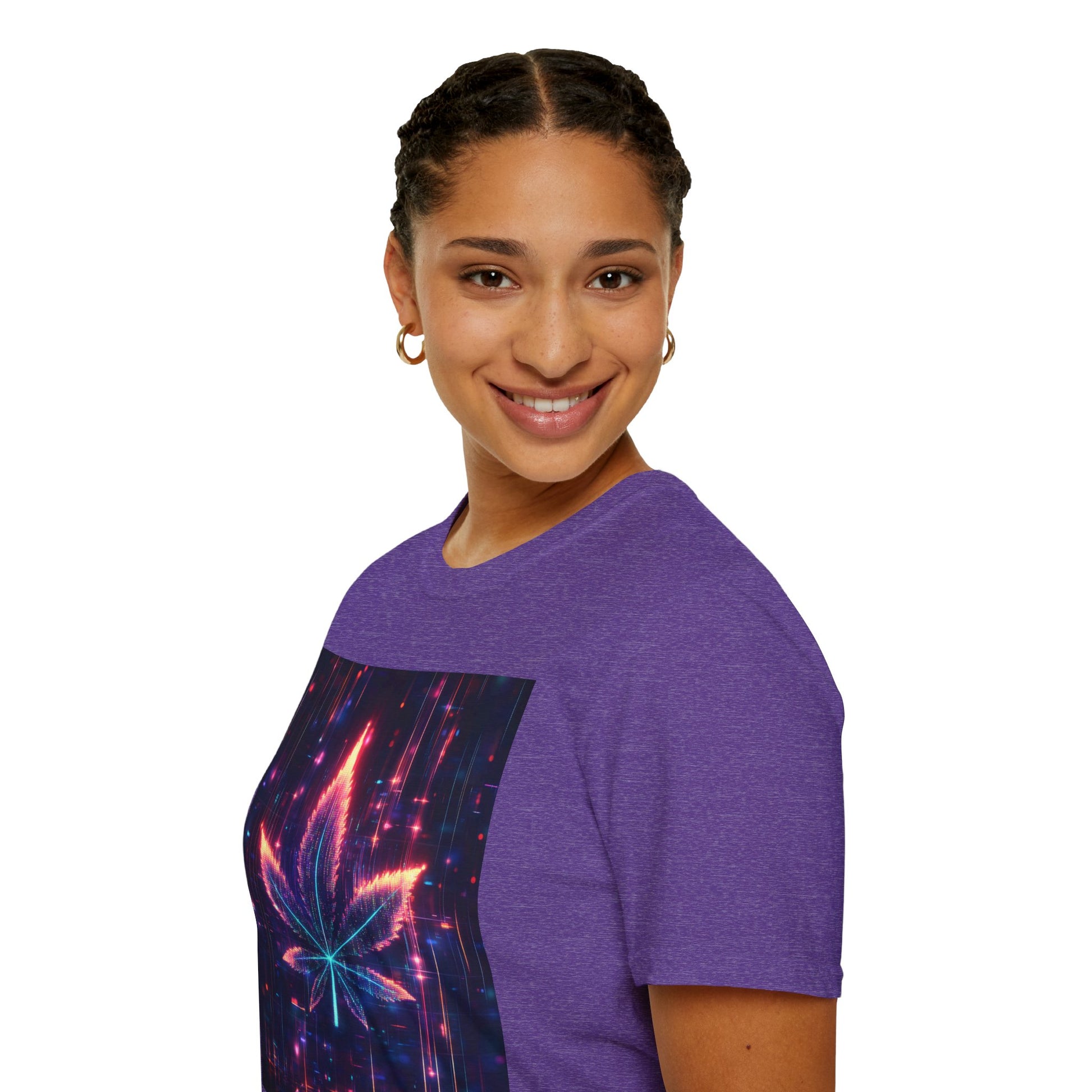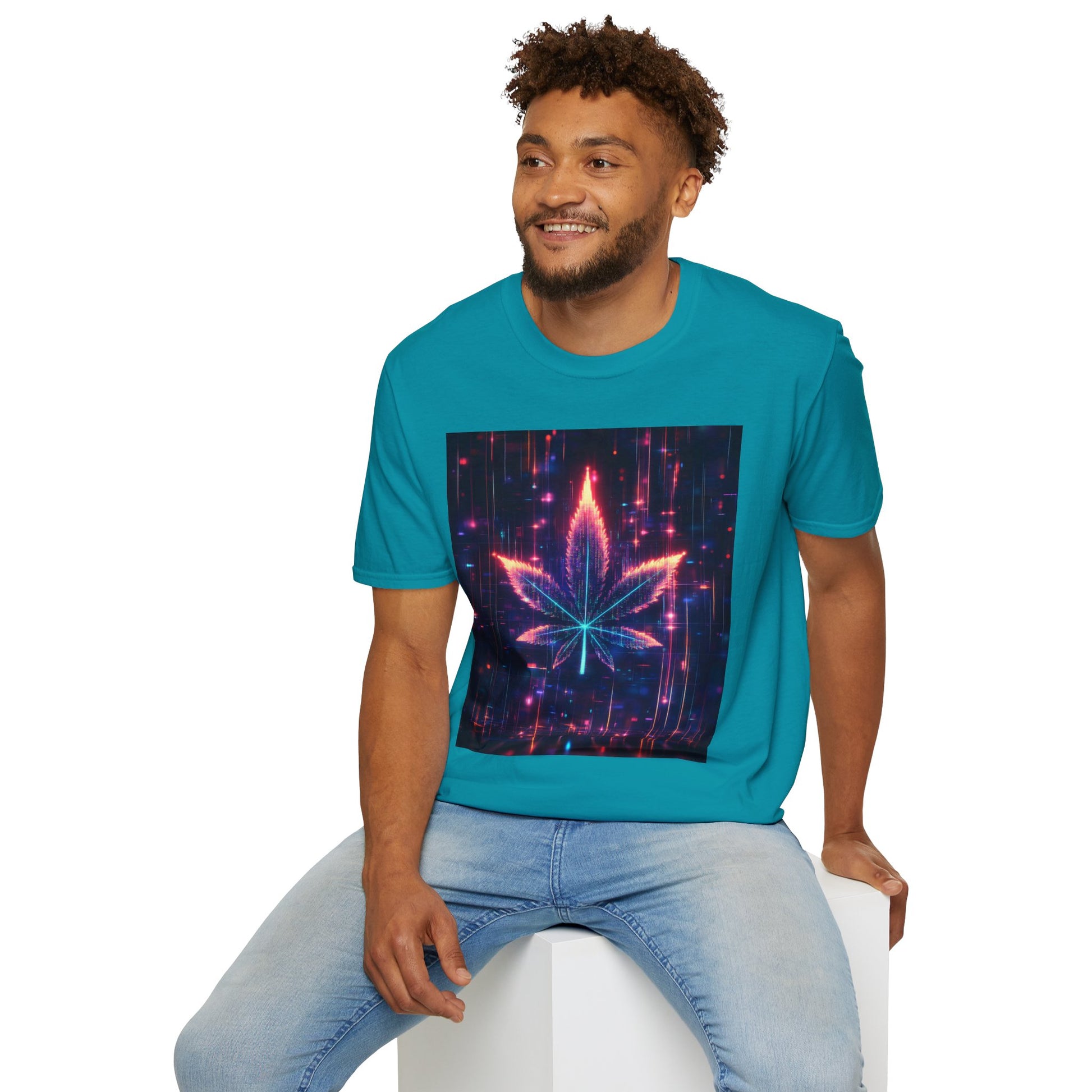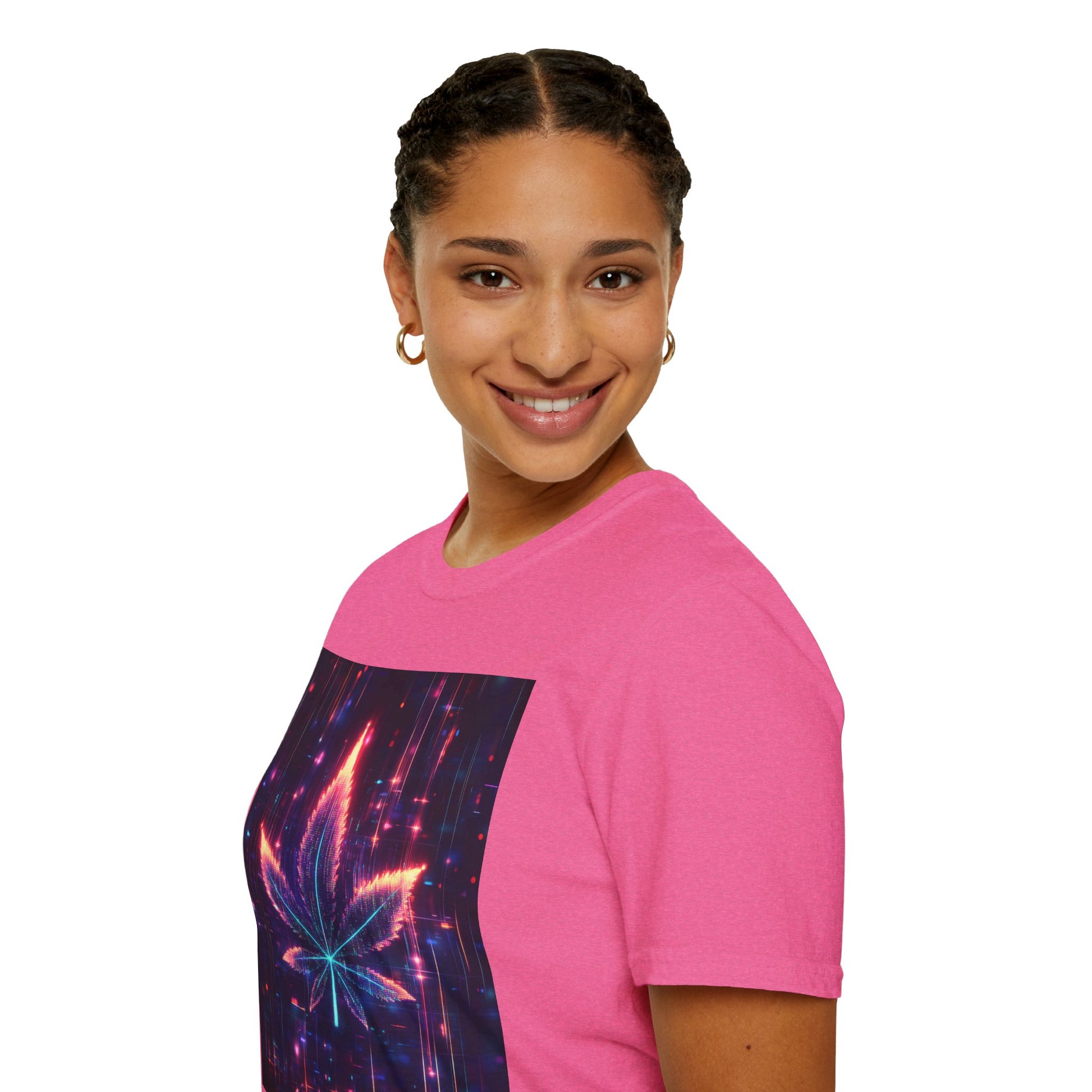 The glowing leaf centerpiece pulses with neon intensity, surrounded by electric sparks and cyber-inspired reflections that capture the timeless ritual of 420 reimagined through a futuristic lens.
