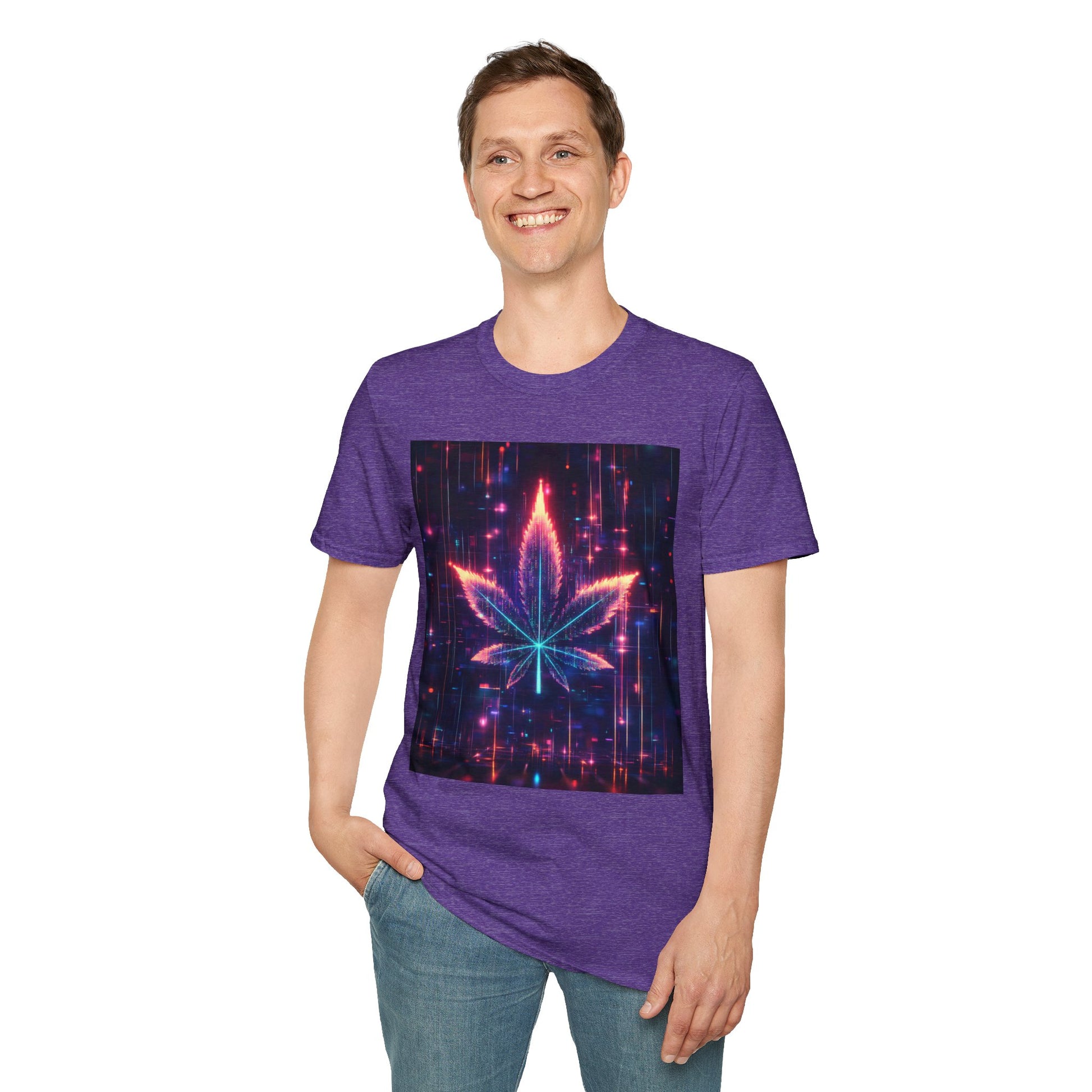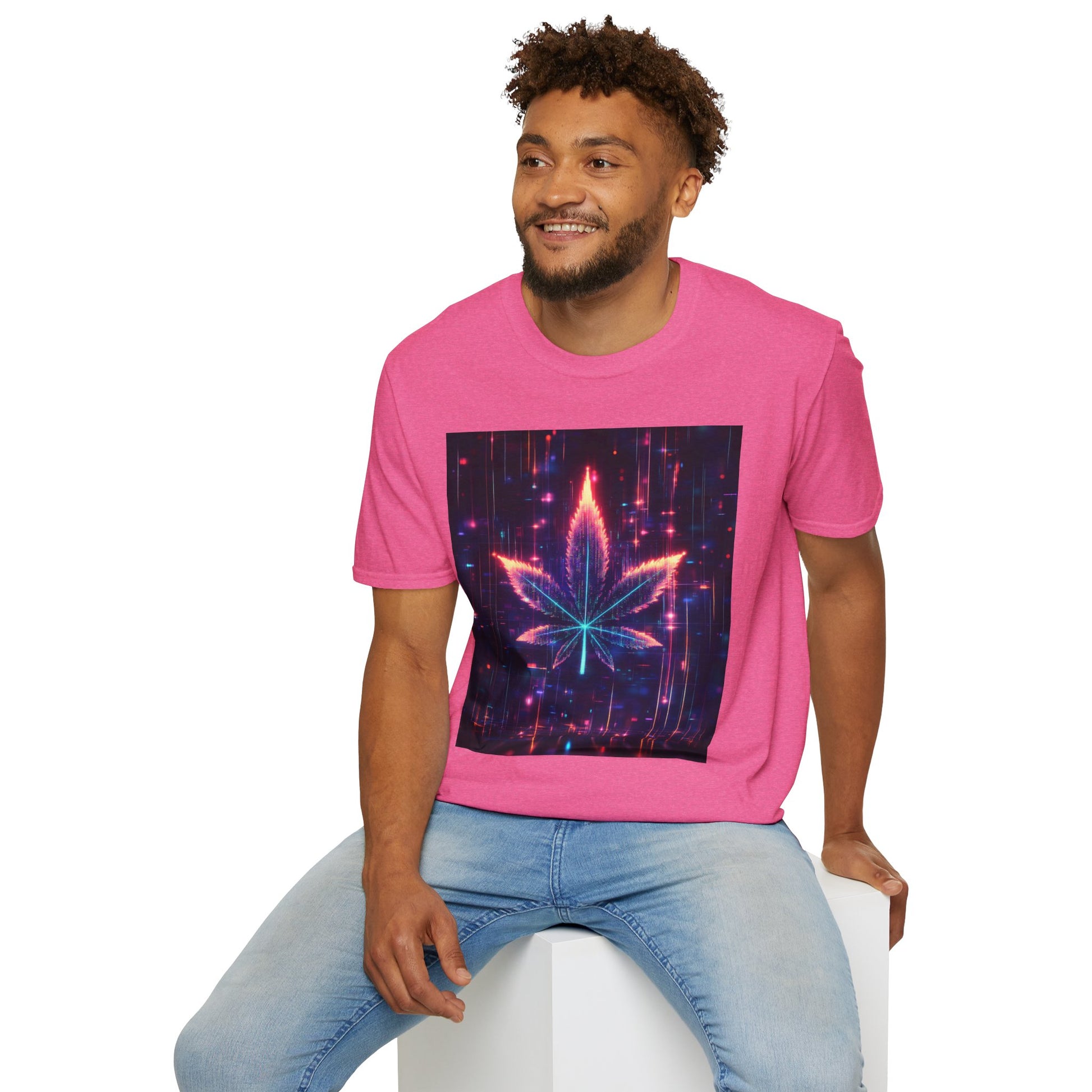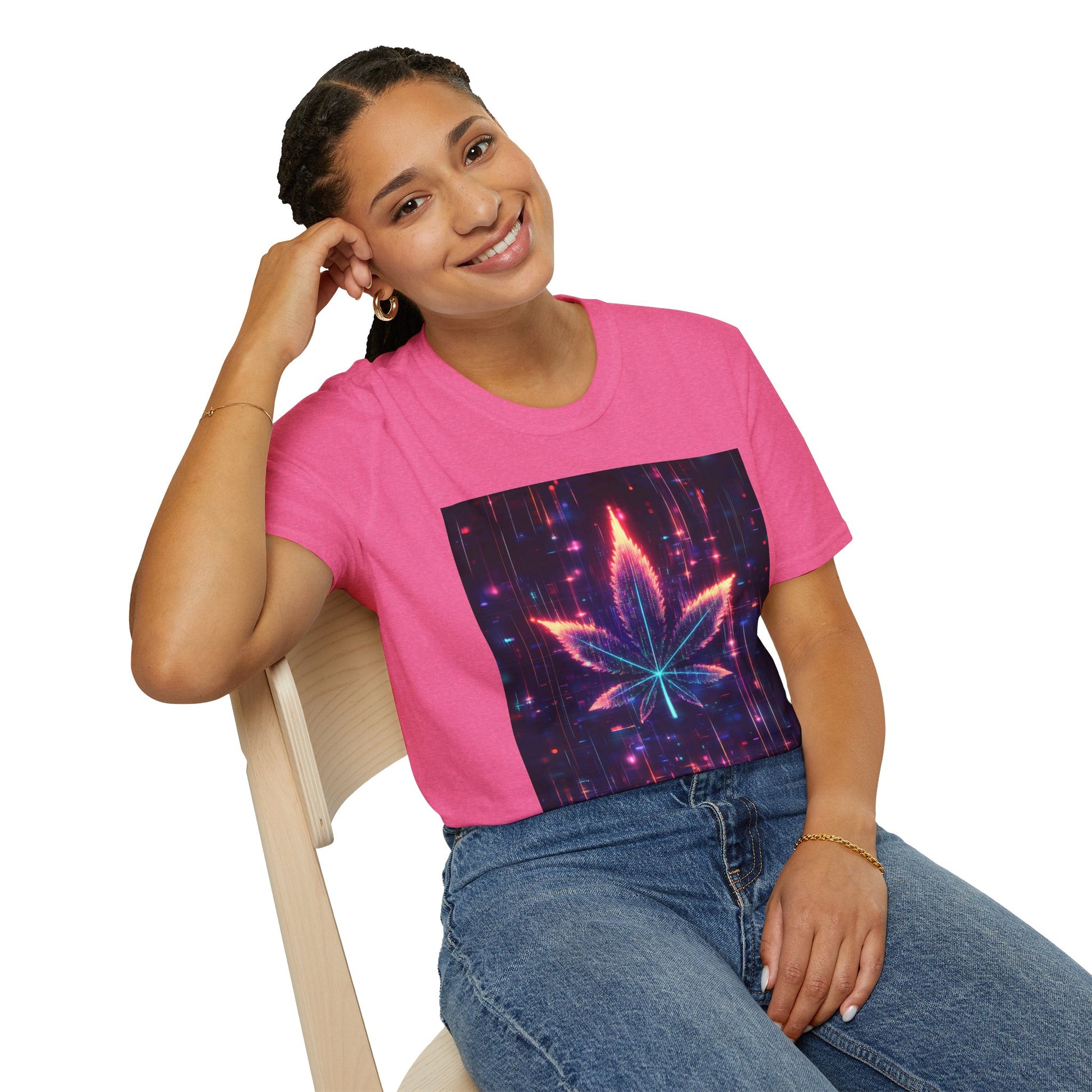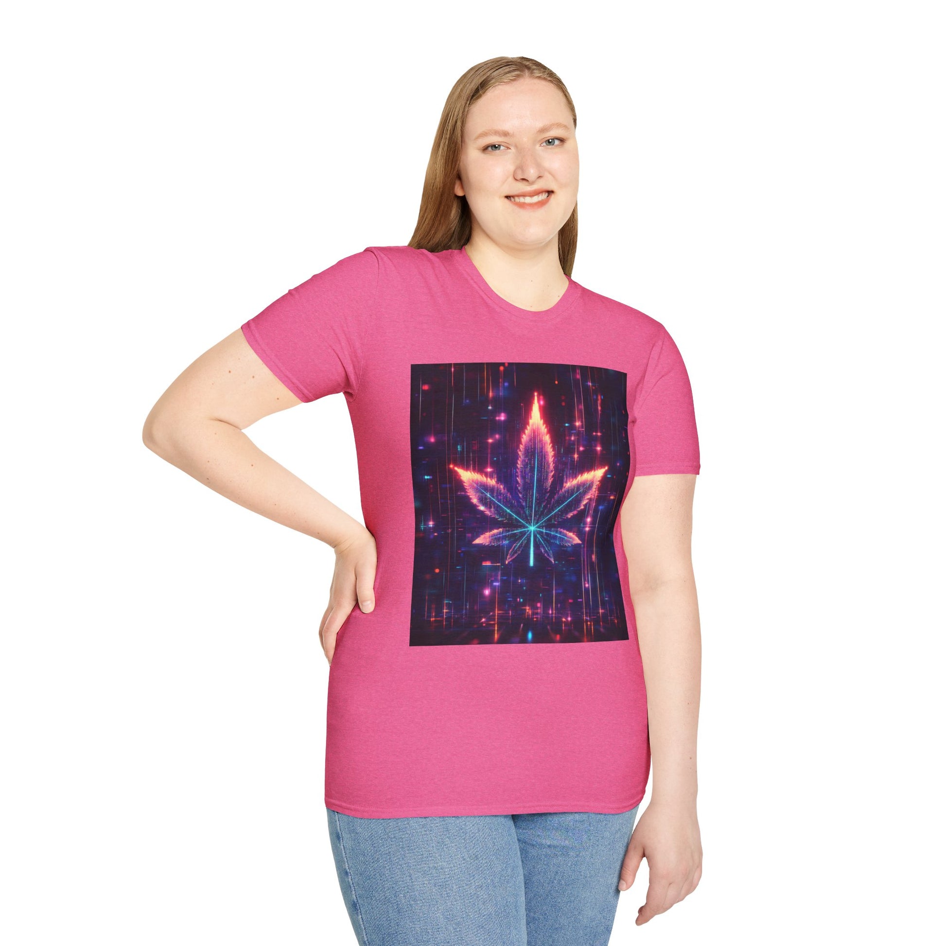 The glowing leaf centerpiece pulses with neon intensity, surrounded by electric sparks and cyber-inspired reflections that capture the timeless ritual of 420 reimagined through a futuristic lens.