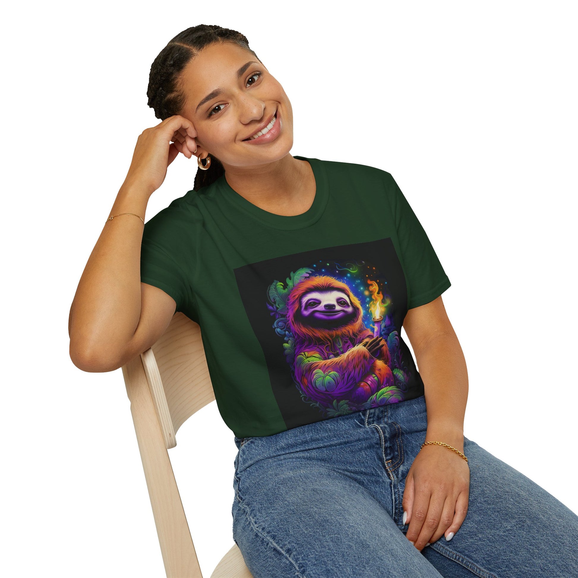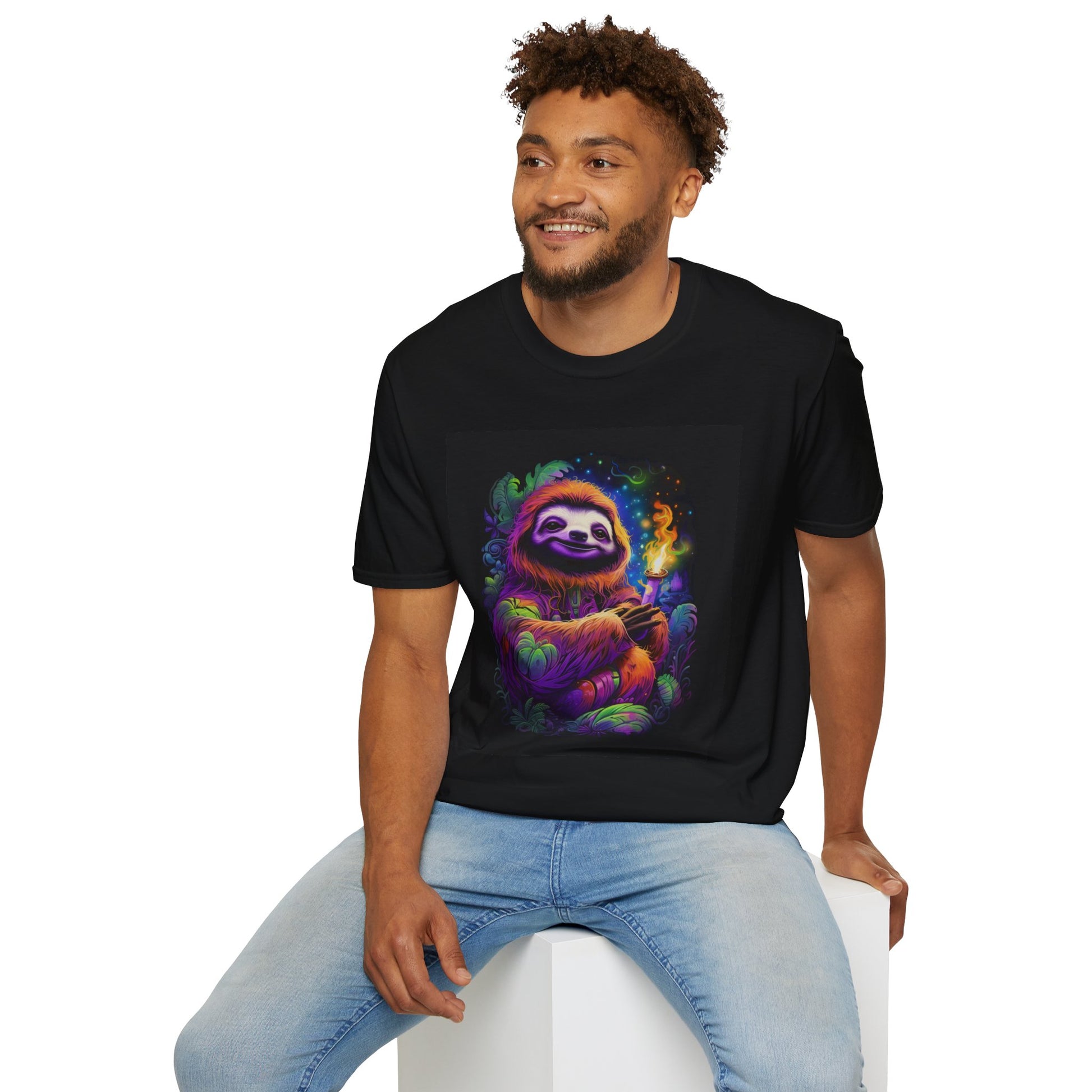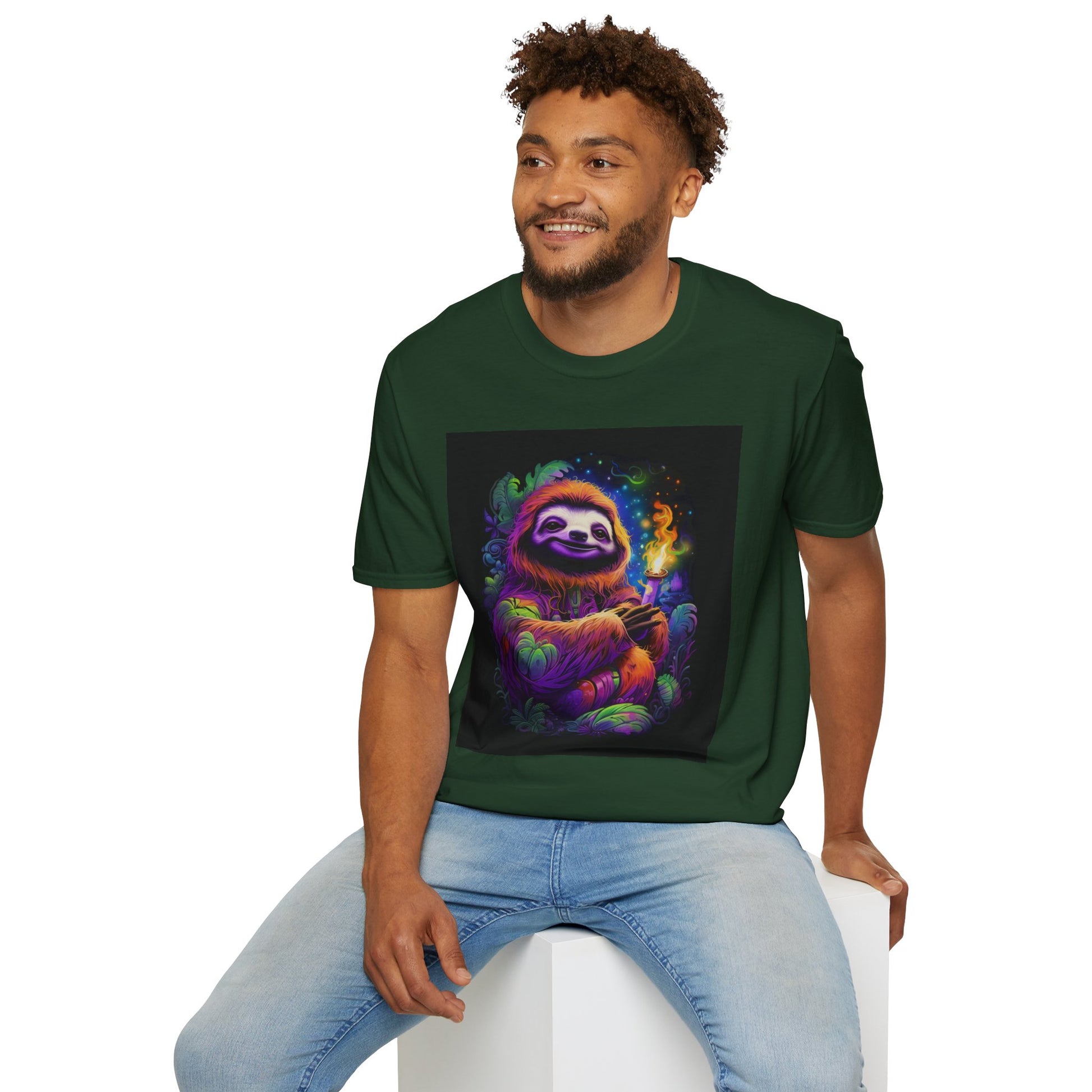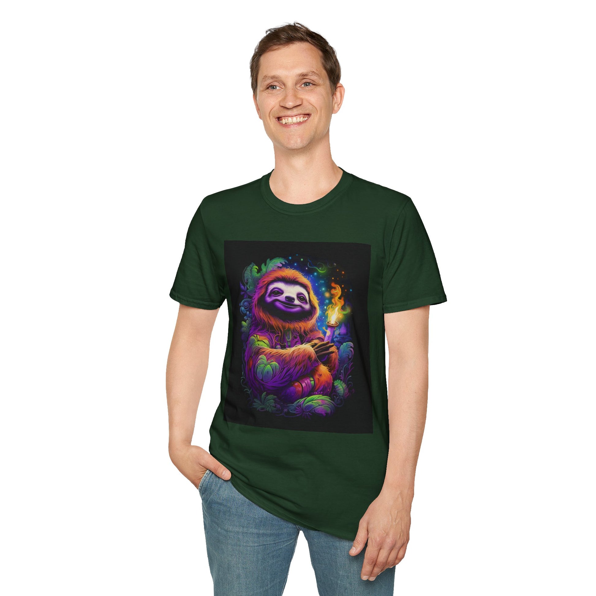Wrapped in a swirl of color and calm, our mellow sloth isn't lonely — he's just tuned into a frequency most people miss. If you’ve ever felt peace in solitude or strength in stillness, this one’s for you.