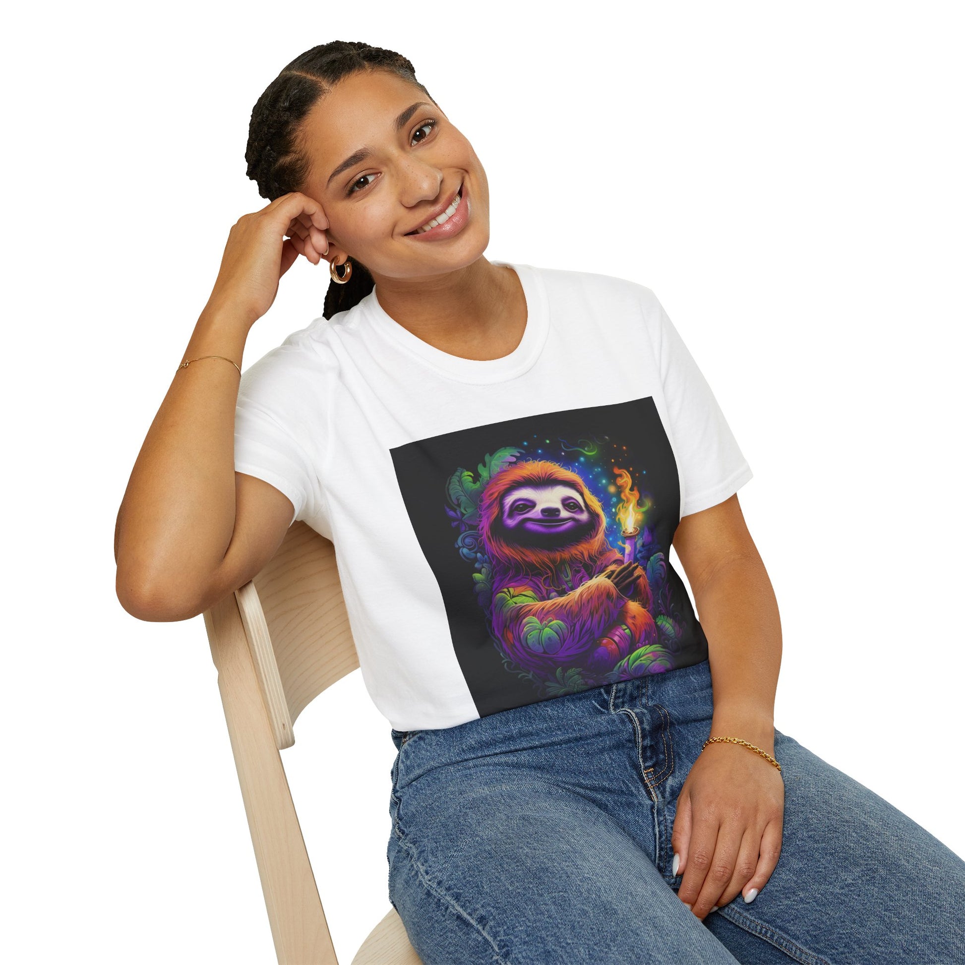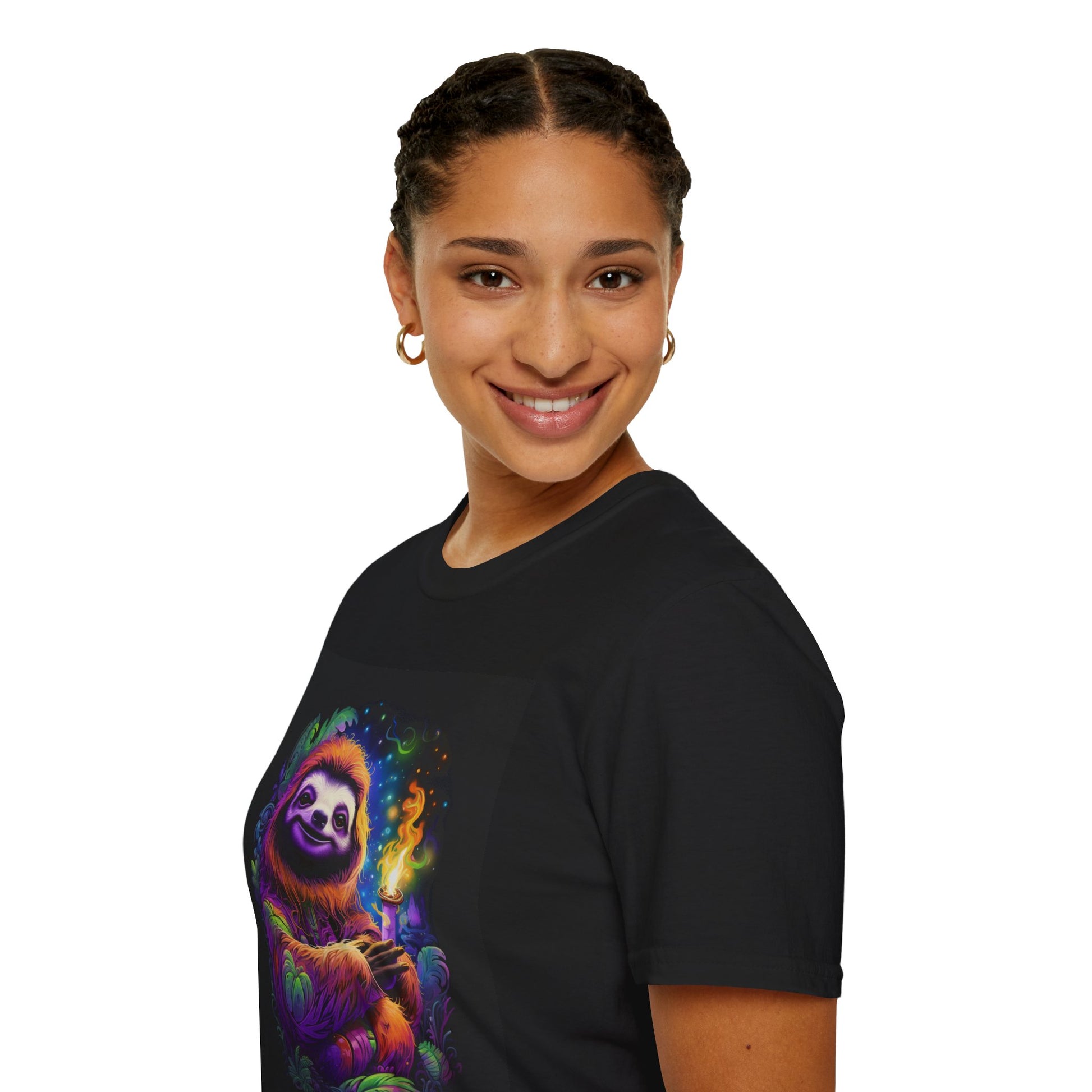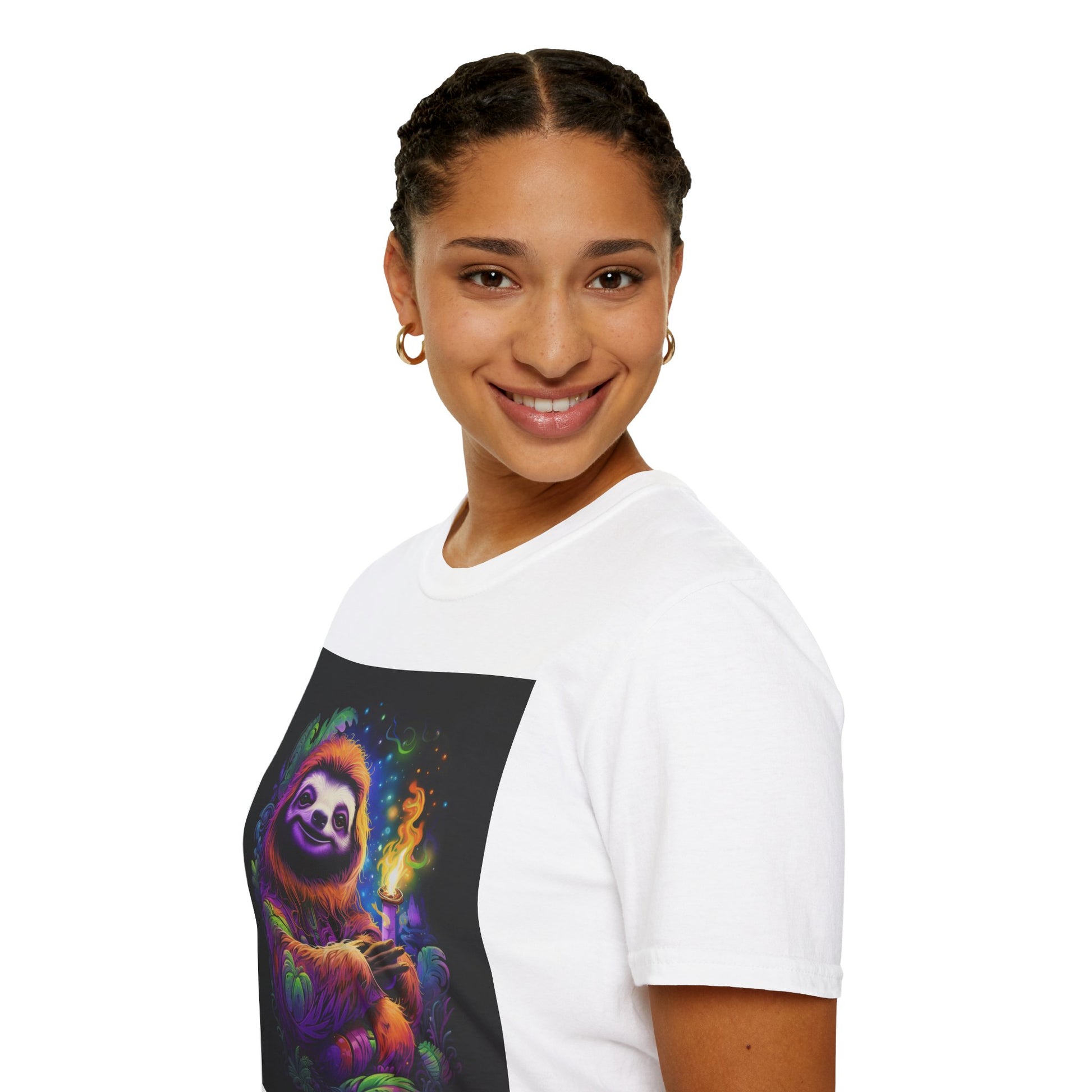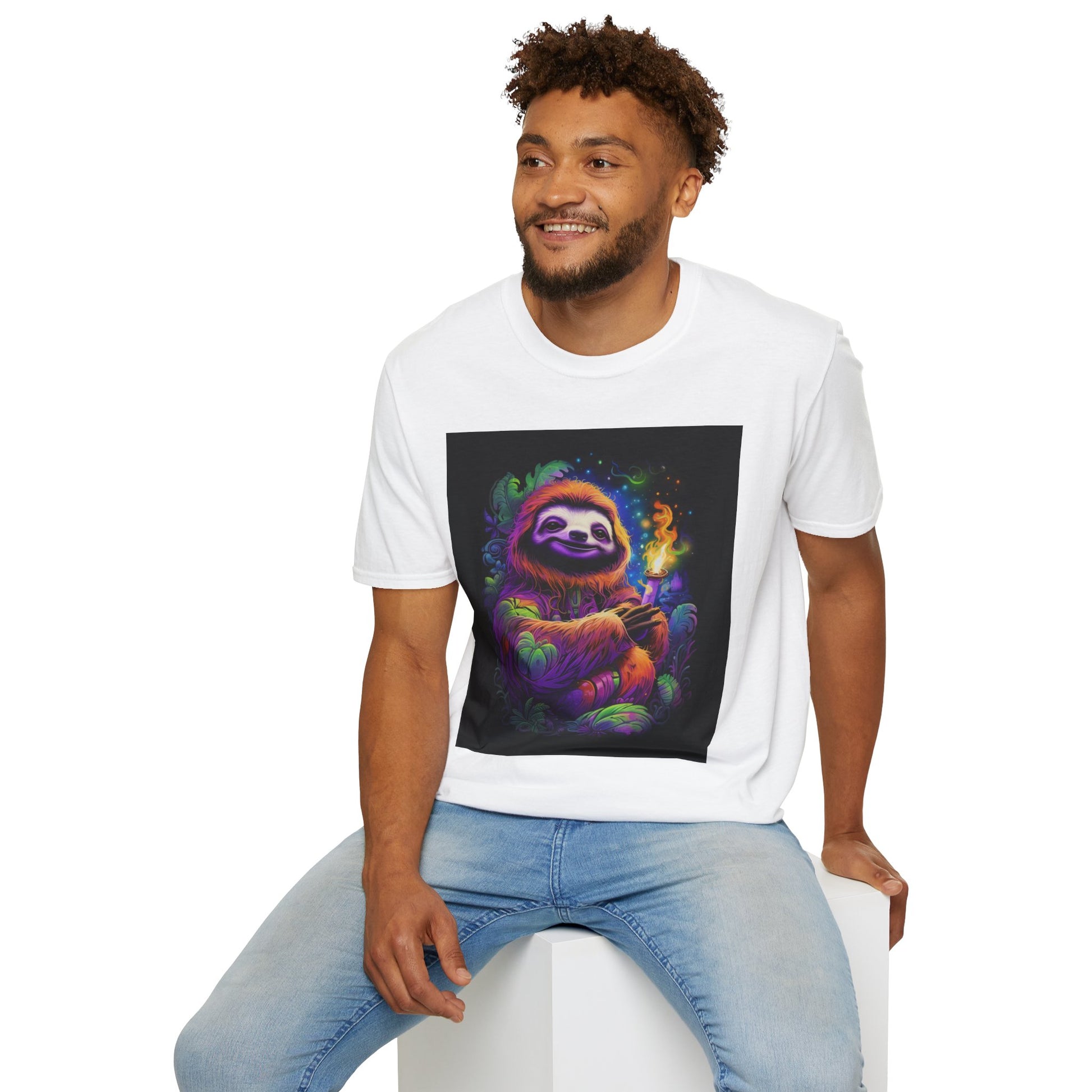 Wrapped in a swirl of color and calm, our mellow sloth isn't lonely — he's just tuned into a frequency most people miss. If you’ve ever felt peace in solitude or strength in stillness, this one’s for you.