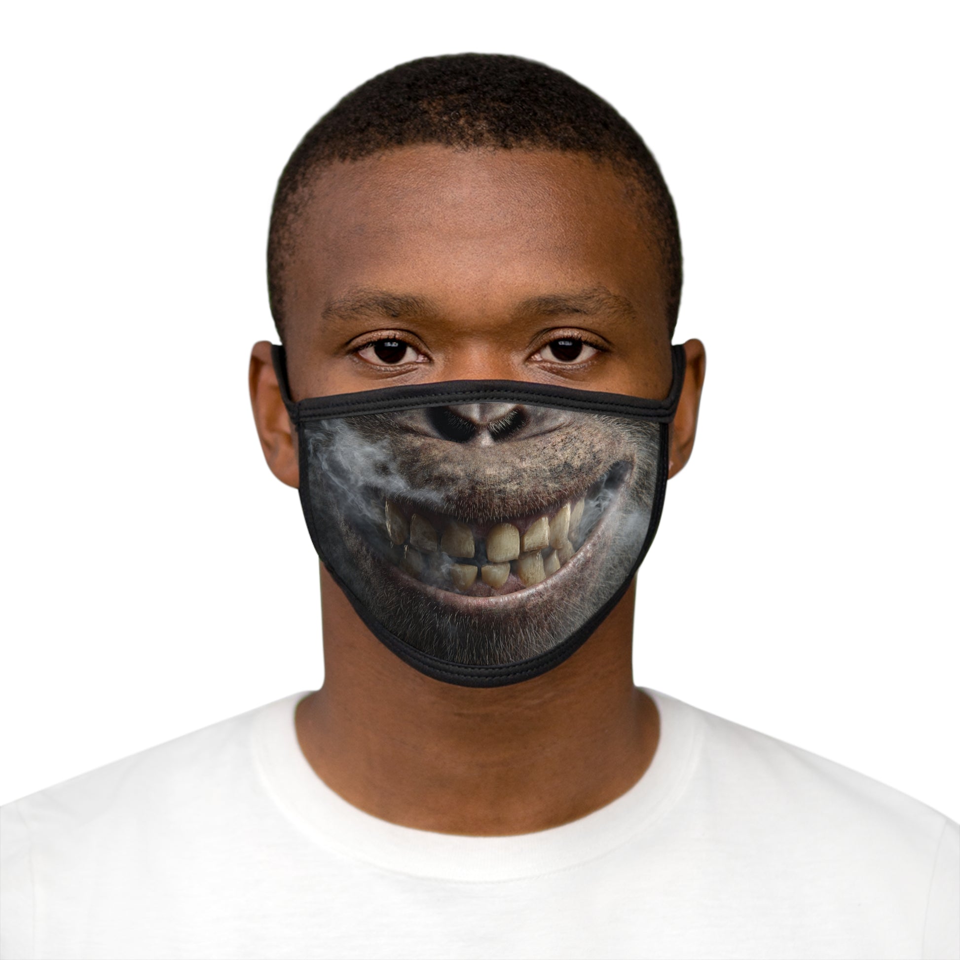 Somewhere between evolution and elevation — this Smokin' Chimp mask fuses smoke, fur, and a wicked grin into one wild statement piece. This hyper-realistic face mask captures a grinning chimp caught mid-session, smoke curling from its lips like jungle incense.