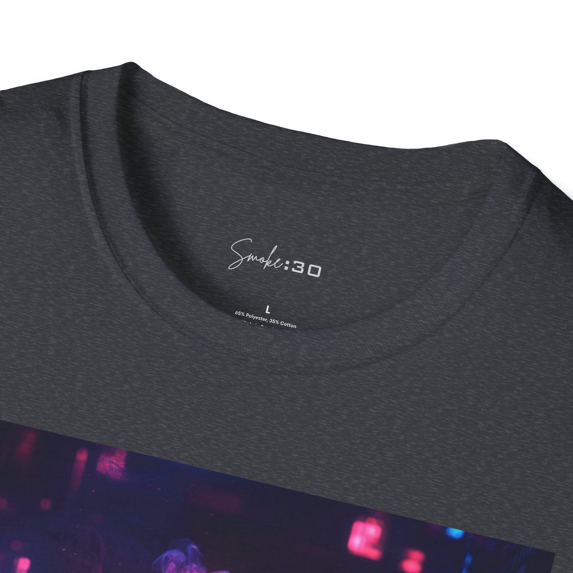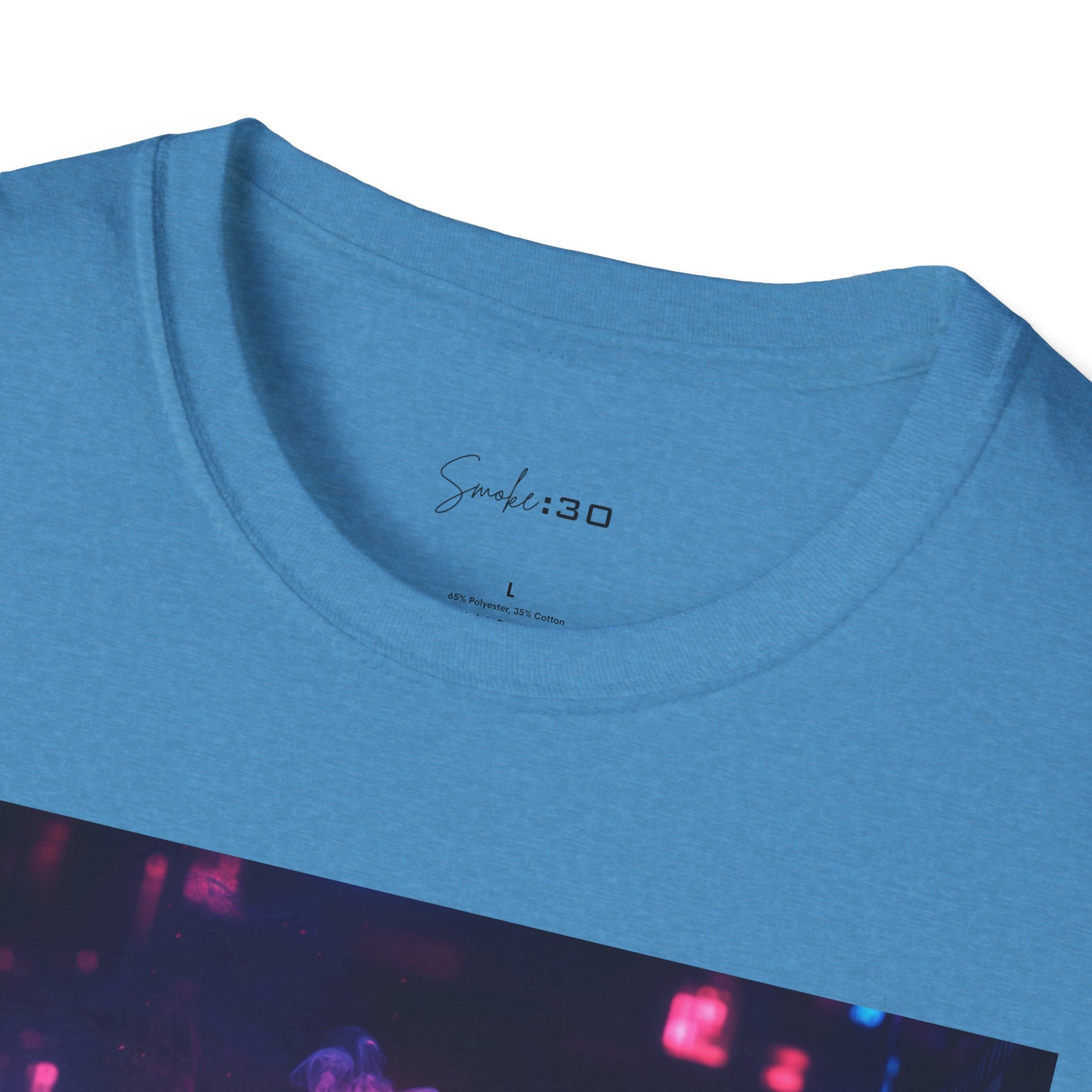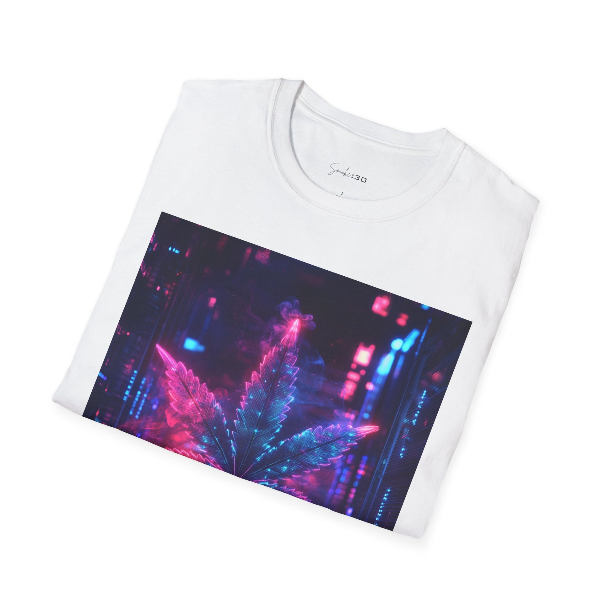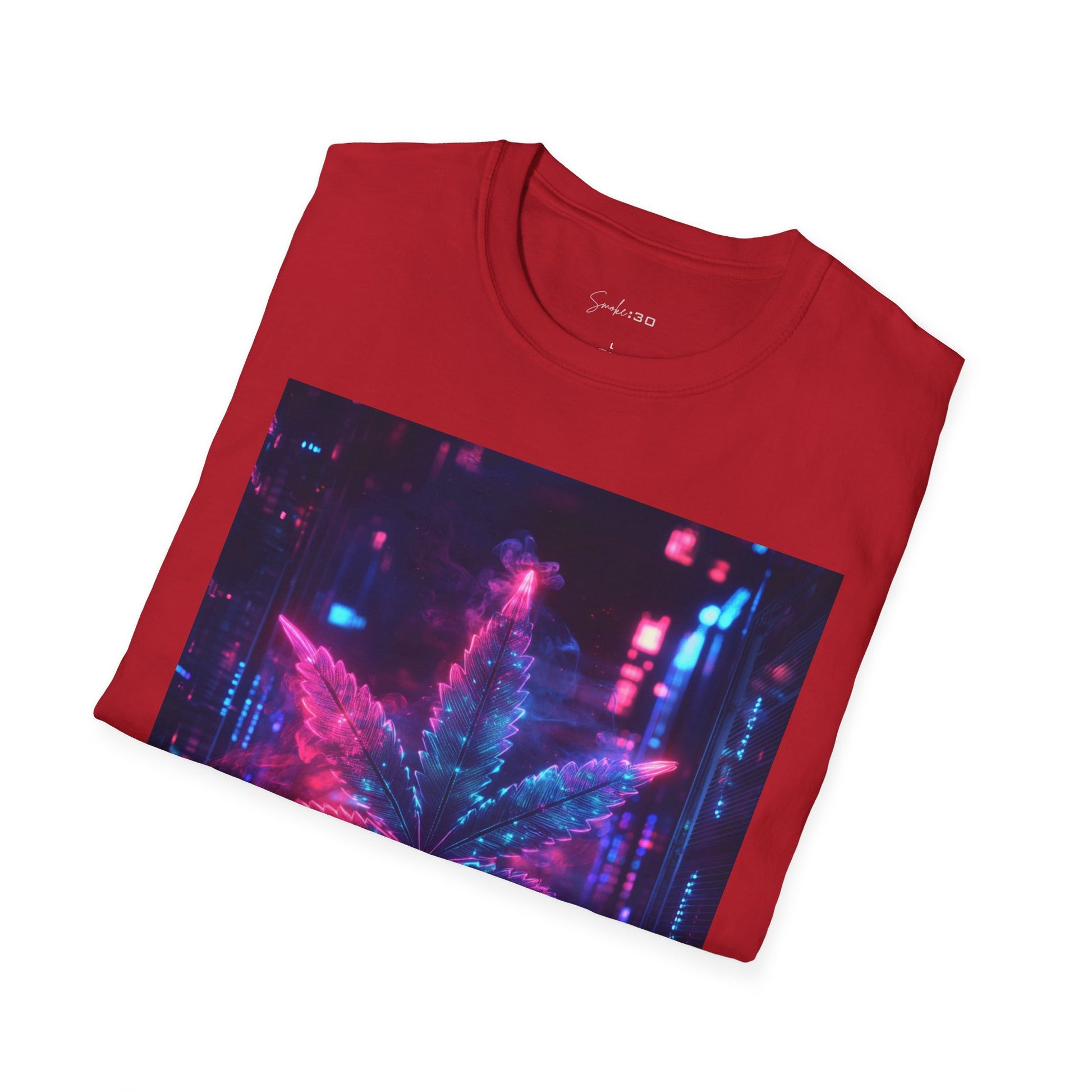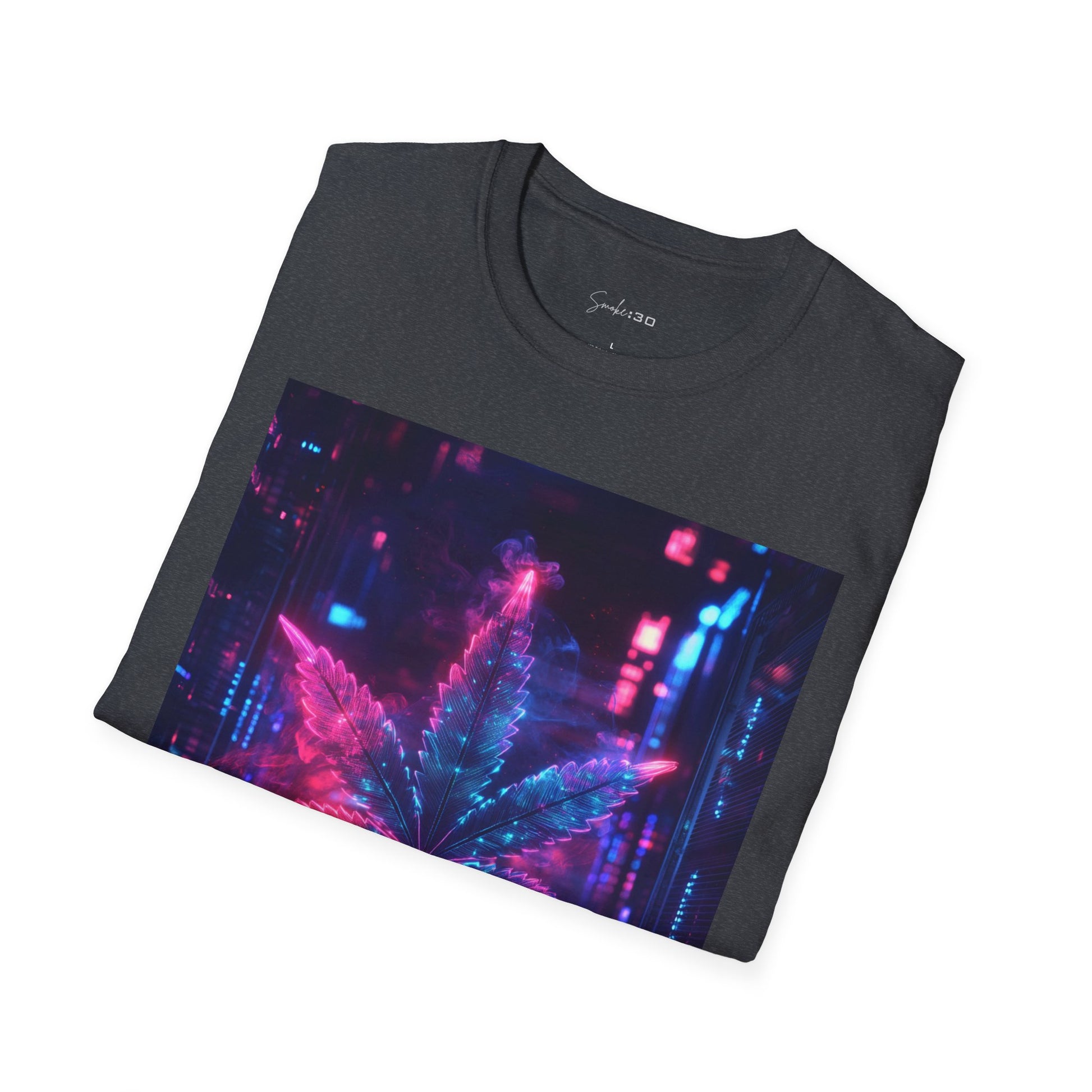 Step into the future of stoner fashion with this Cyber High T-shirt. Featuring a neon-lit marijuana leaf glowing in a futuristic digital cityscape, this tee fuses cyberpunk aesthetics with stoner culture for a truly next-level vibe. Whether you're sparking up or just flexing your chill, this design is a statement piece that pulses with electric energy.