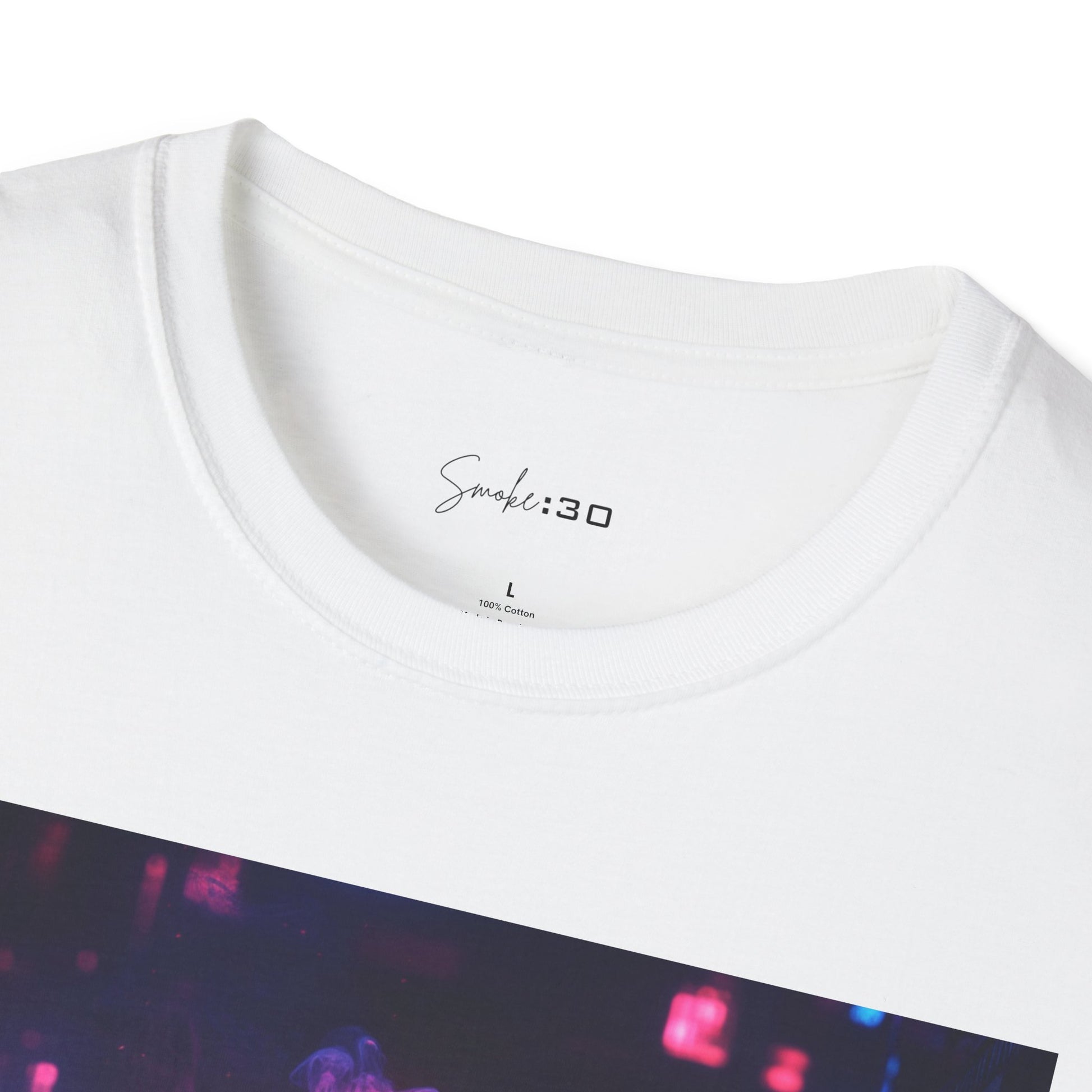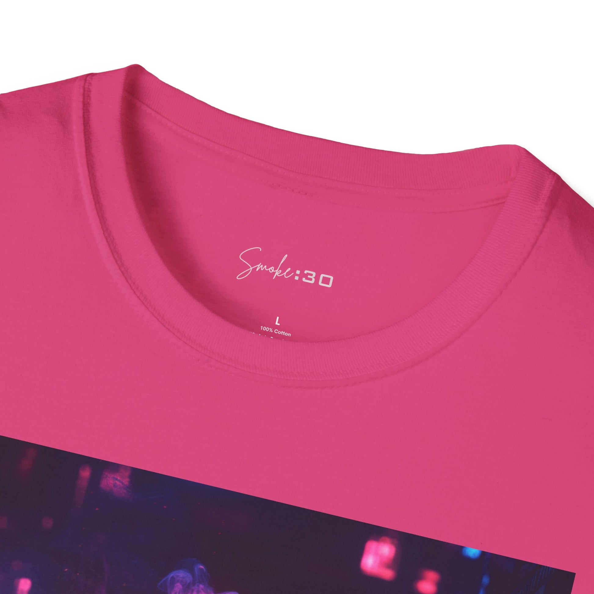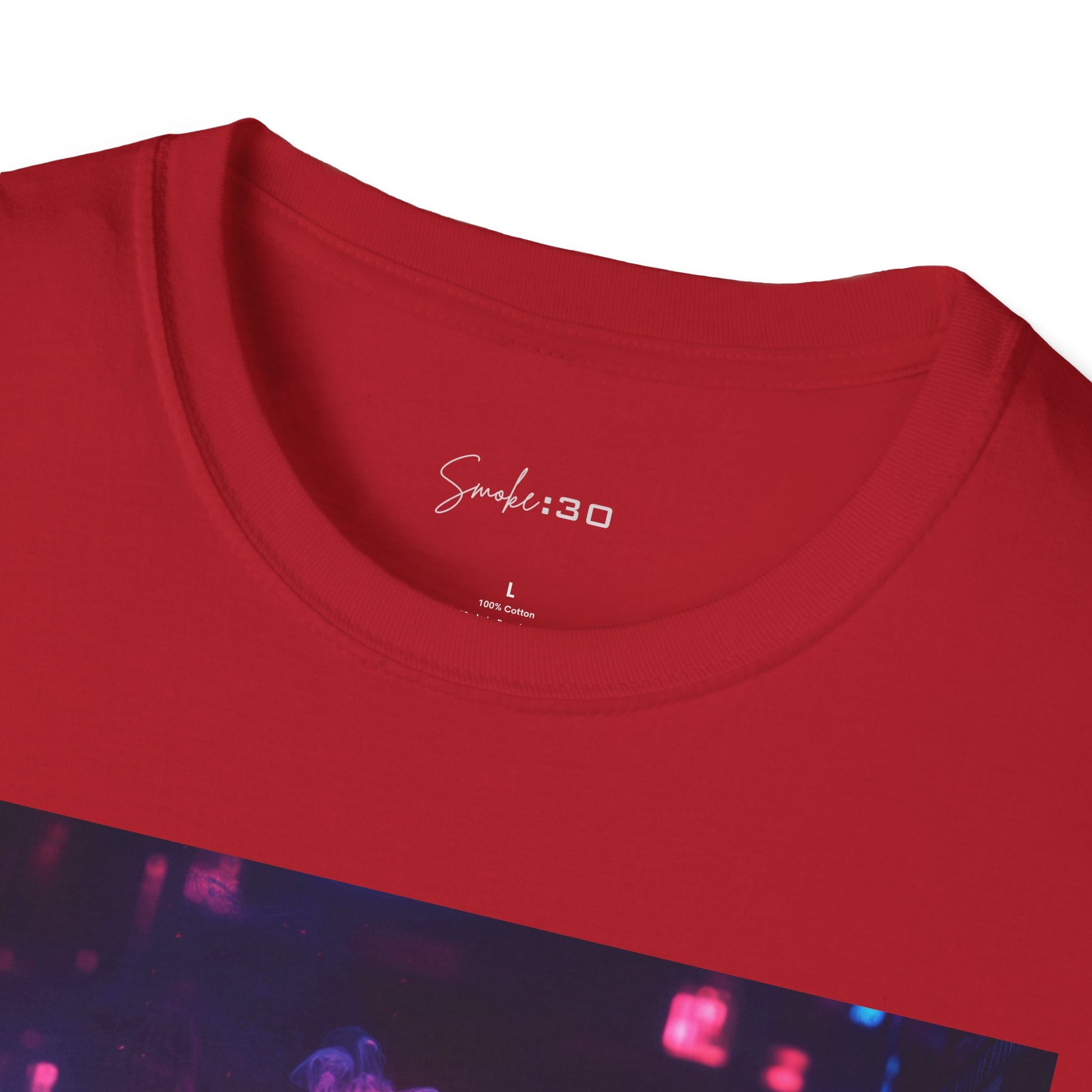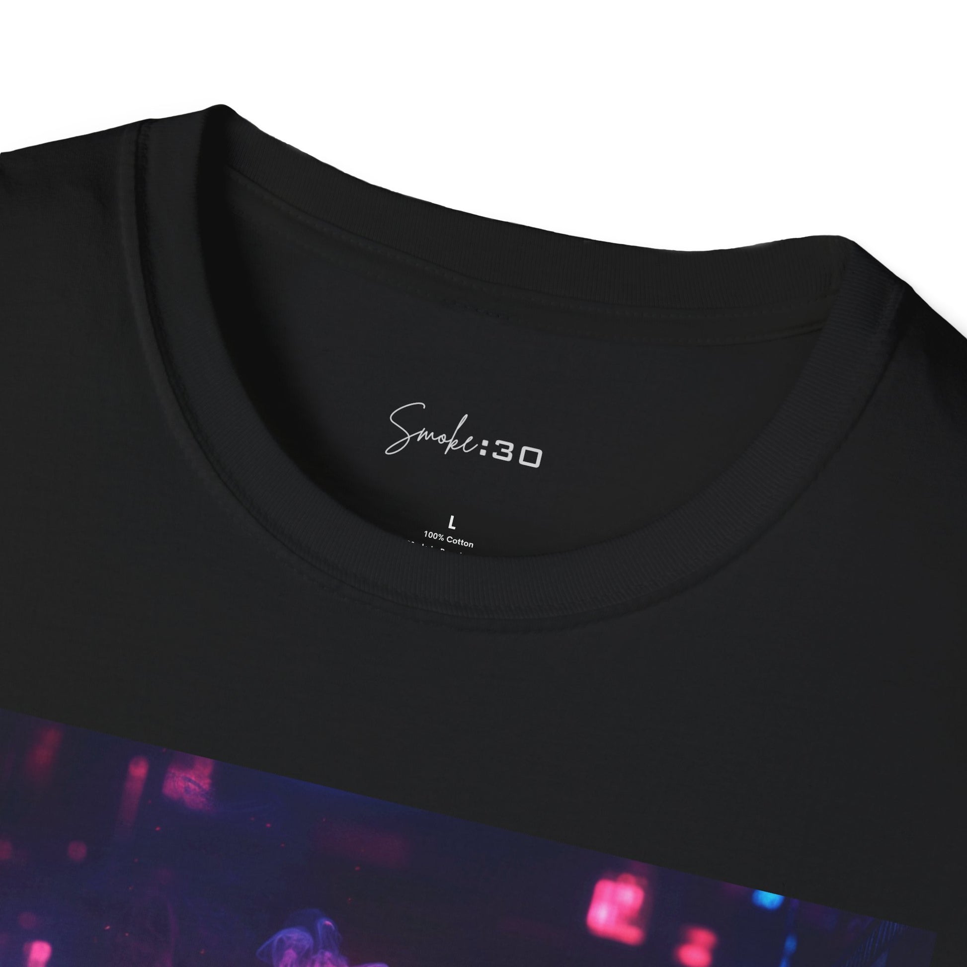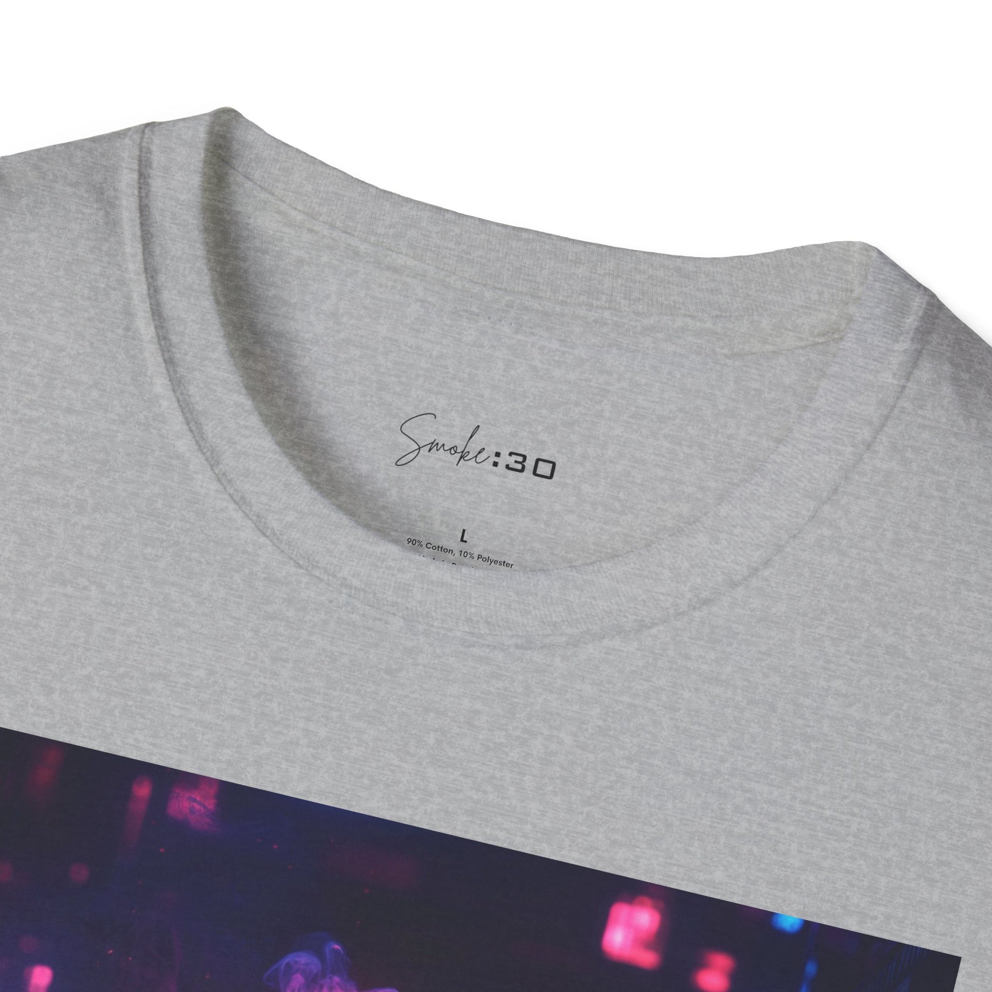 Step into the future of stoner fashion with this Cyber High T-shirt. Featuring a neon-lit marijuana leaf glowing in a futuristic digital cityscape, this tee fuses cyberpunk aesthetics with stoner culture for a truly next-level vibe. Whether you're sparking up or just flexing your chill, this design is a statement piece that pulses with electric energy.