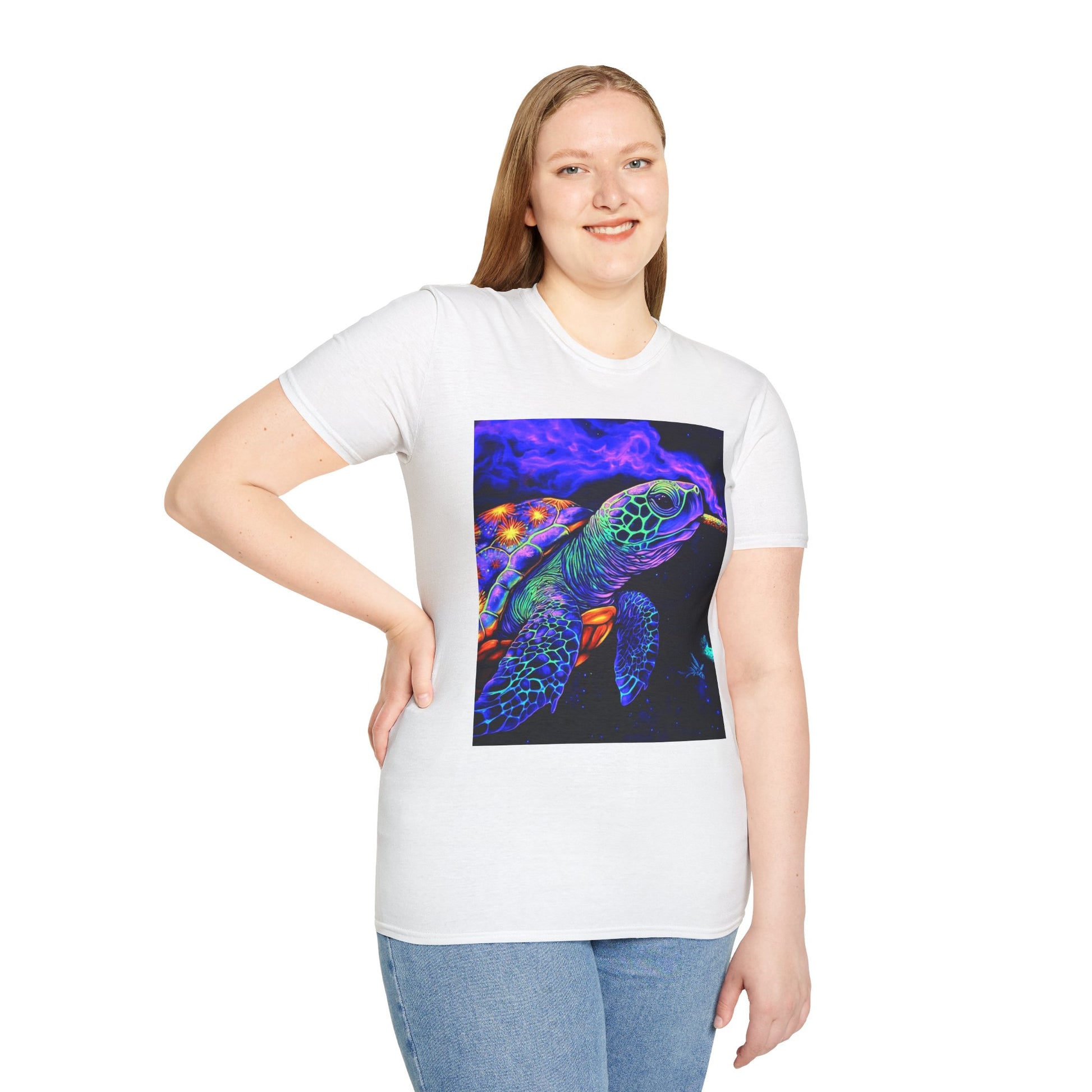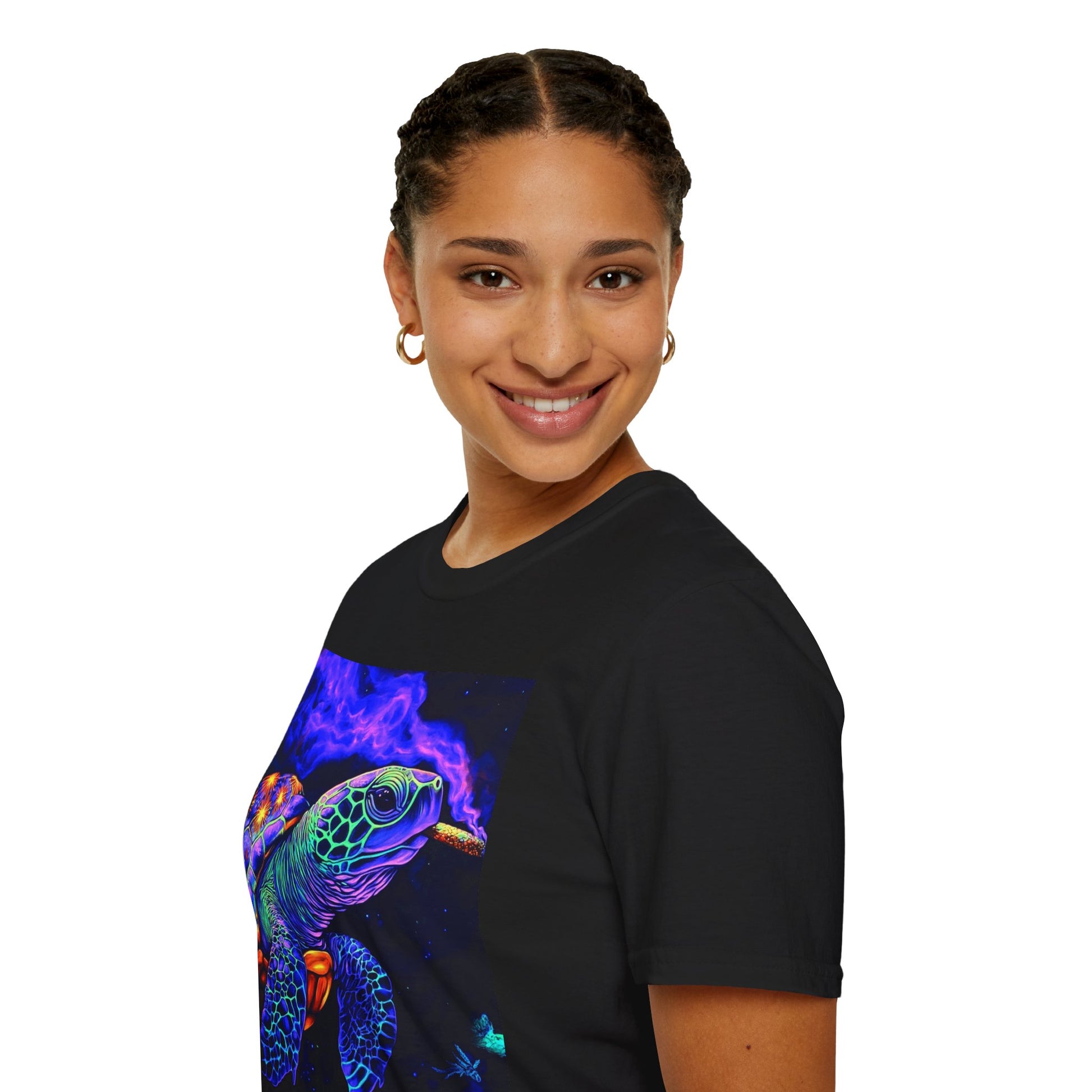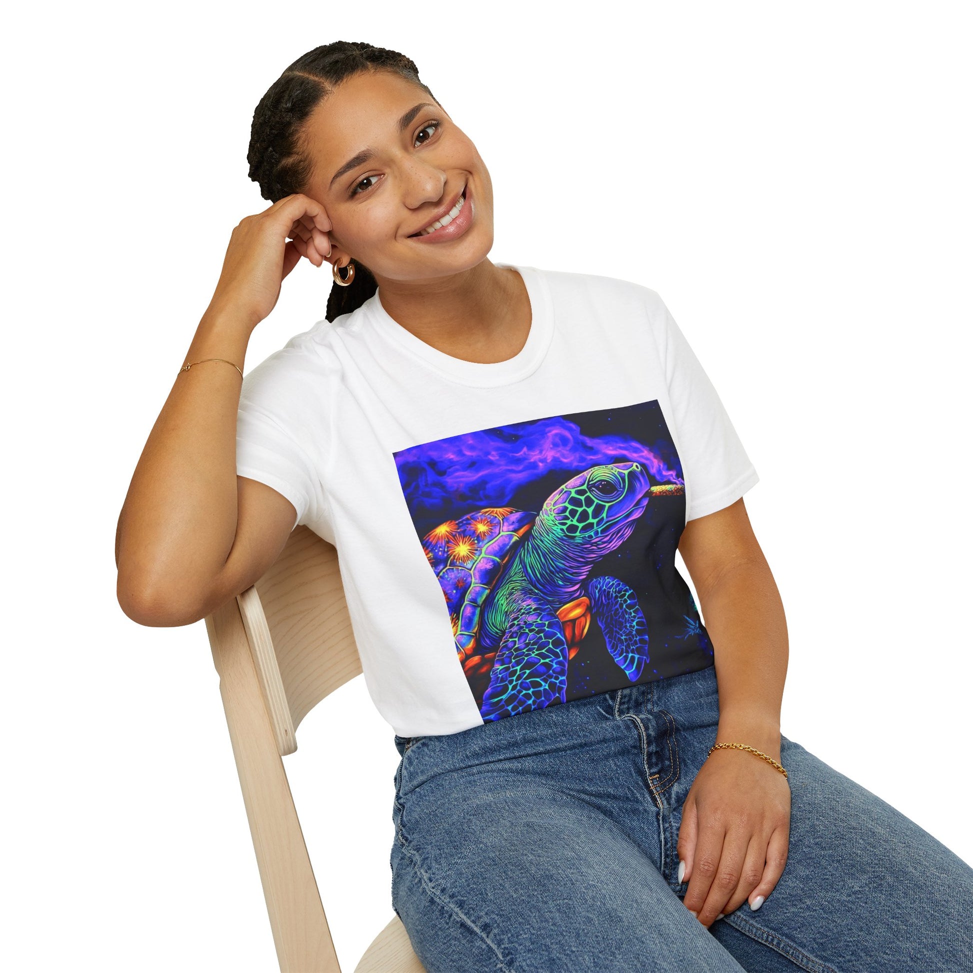 Meet the slowest flex in the galaxy. The Smoking Turtle drifts through a neon ocean of calm, trailing a swirl of violet smoke that blurs the line between space and sea. Electric blues, glowing greens, and cosmic orange ripple through his shell like galaxies in motion. It’s not just a trip — it’s a reminder to move at your own pace, breathe deep, and let the world catch up.